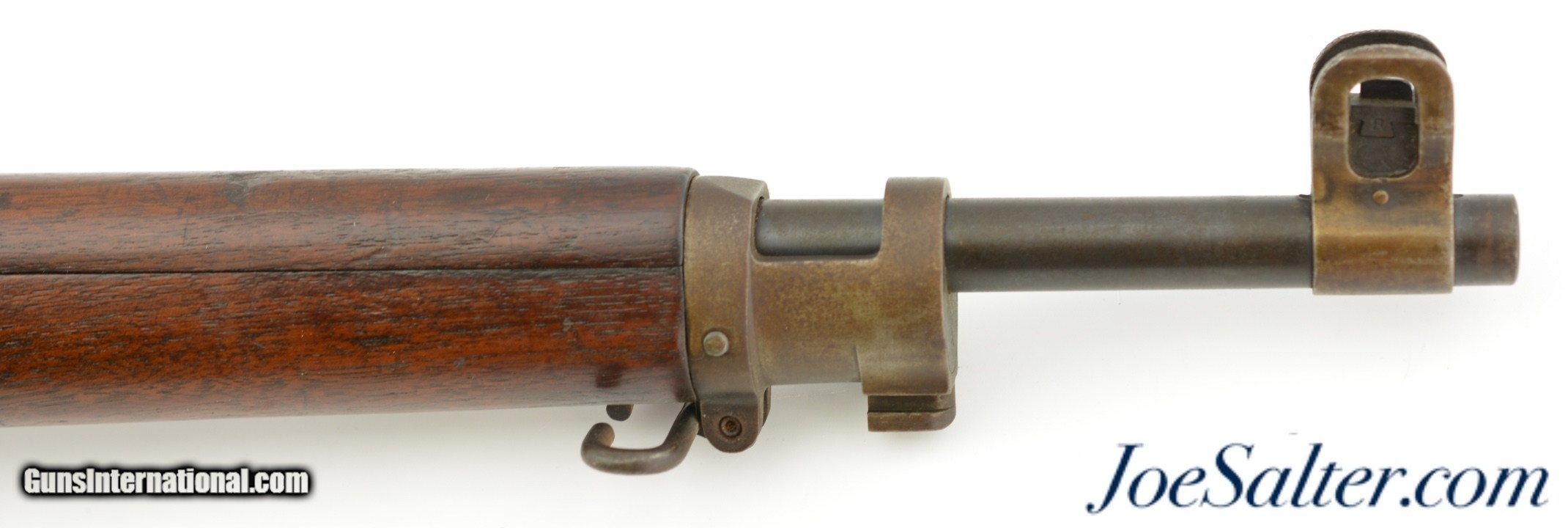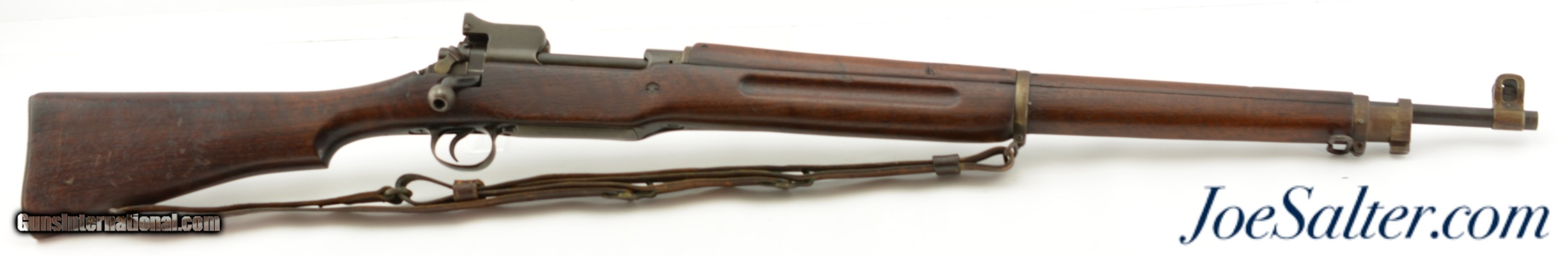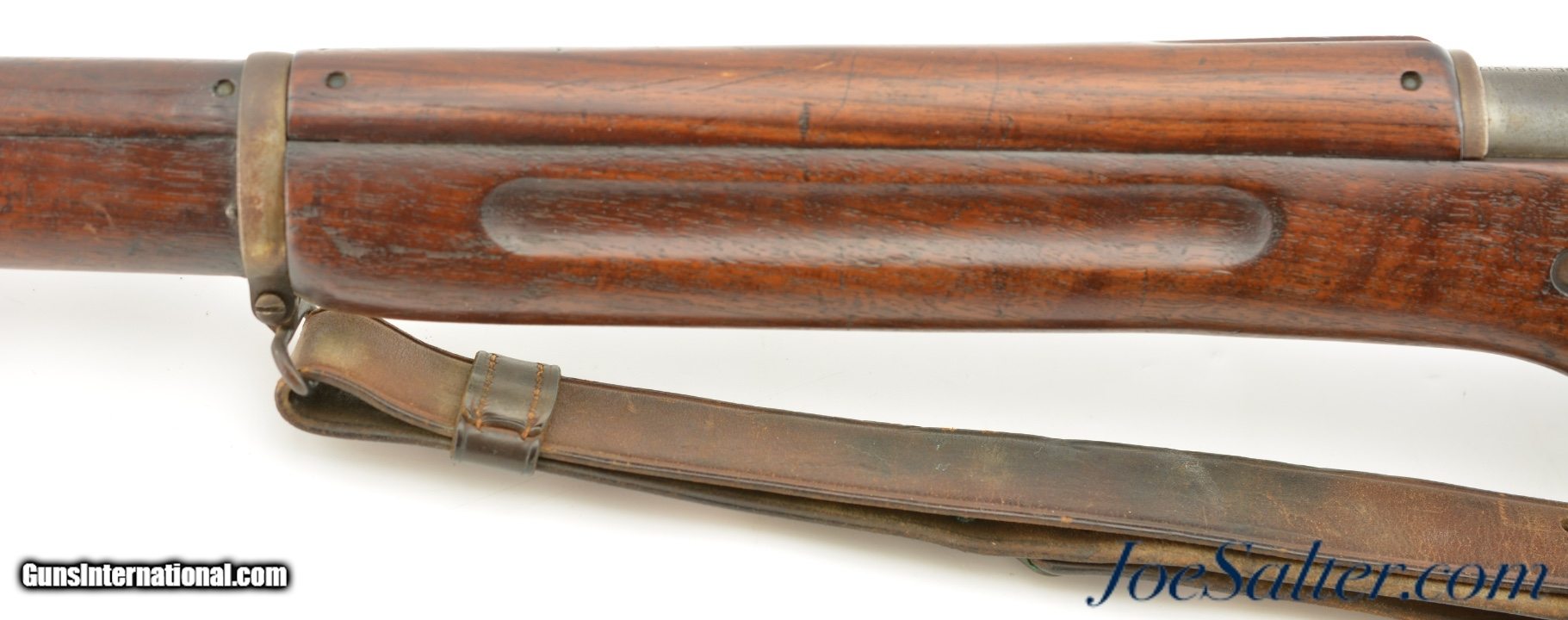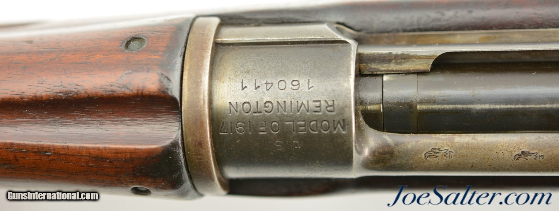 Description: Serial #160411, .30-06, 26" barrel with a very good, bright bore that has some minor pitting along the lands. This is a handsome rifle that has a 2-18 dated, "R" marked barrel and an "E" marked, Eddystone bolt. The metal has retained 75-80% of the original brushed blue finish, with silvering at the muzzle, and gray fading along the raised edges and contact points. The markings are crisp and clear, and the "R" marked stock and handguard are in fine condition, with minor handling marks and blemishes scattered about the added varnish finish. Additionally, the rifle is fitted with a Model 1907 type leather sling that is in good, serviceable condition, with crazing and minor flaking along the edges. A period US nickel steel oiler is included in the stock compartment. This is a nice example of a Model 1917 Enfield, and is in very good condition overall. FFL or C&R; SOLD Curio/Relic: Yes |