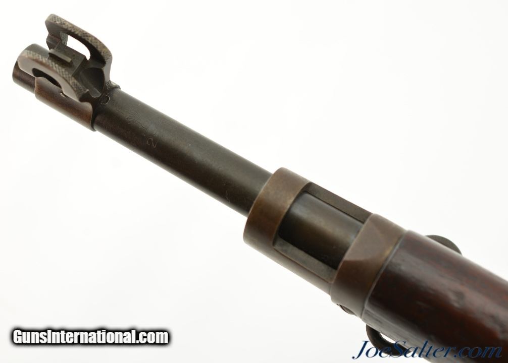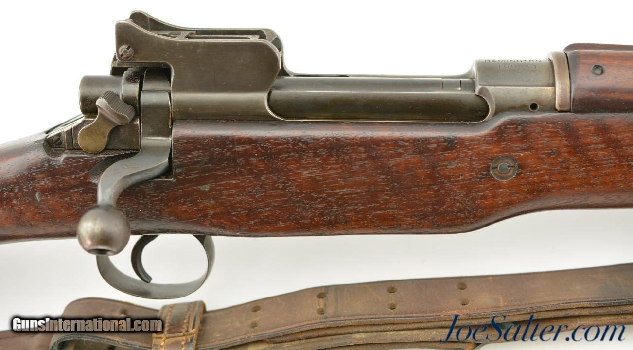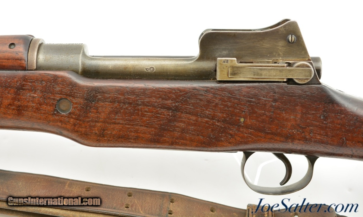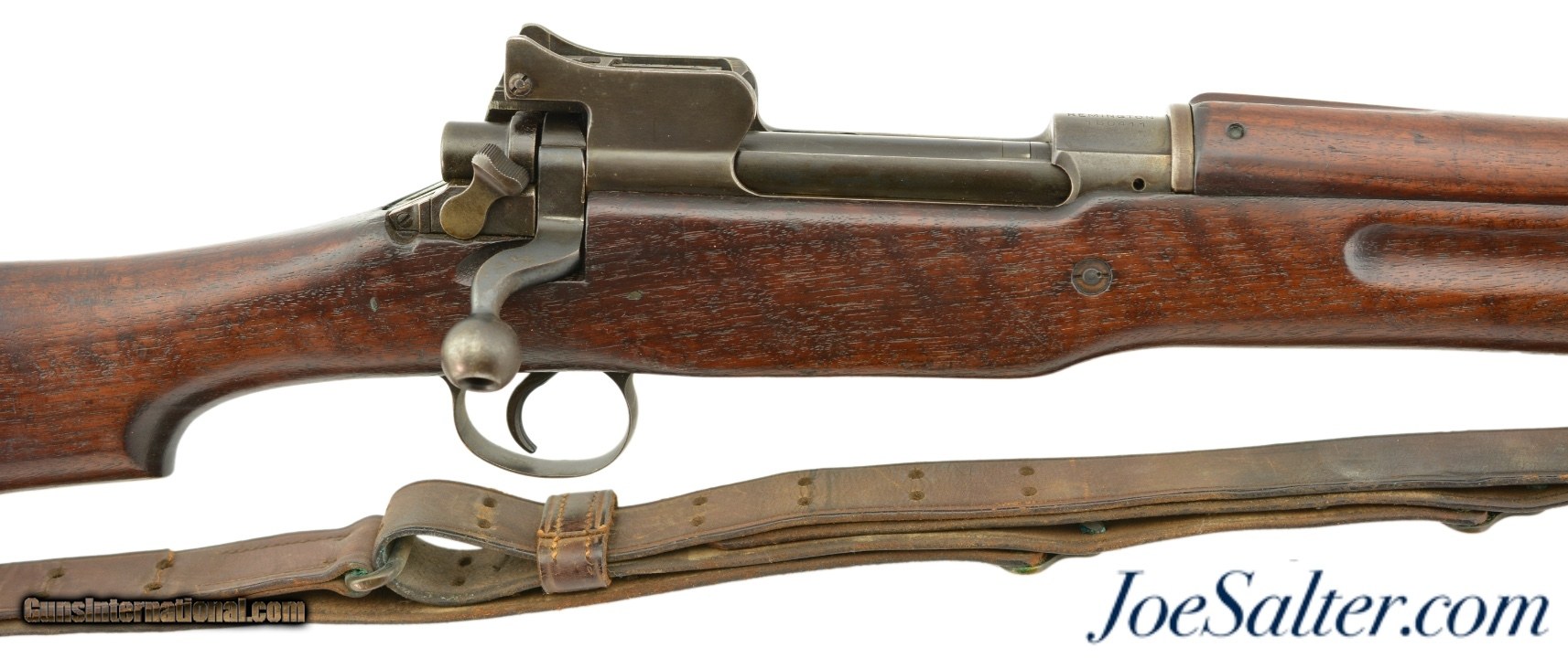 Description: Serial #160411, .30-06, 26" barrel with a very good, bright bore that has some minor pitting along the lands. This is a handsome rifle that has a 2-18 dated, "R" marked barrel and an "E" marked, Eddystone bolt. The metal has retained 75-80% of the original brushed blue finish, with silvering at the muzzle, and gray fading along the raised edges and contact points. The markings are crisp and clear, and the "R" marked stock and handguard are in fine condition, with minor handling marks and blemishes scattered about the added varnish finish. Additionally, the rifle is fitted with a Model 1907 type leather sling that is in good, serviceable condition, with crazing and minor flaking along the edges. A period US nickel steel oiler is included in the stock compartment. This is a nice example of a Model 1917 Enfield, and is in very good condition overall. FFL or C&R; SOLD Curio/Relic: Yes |