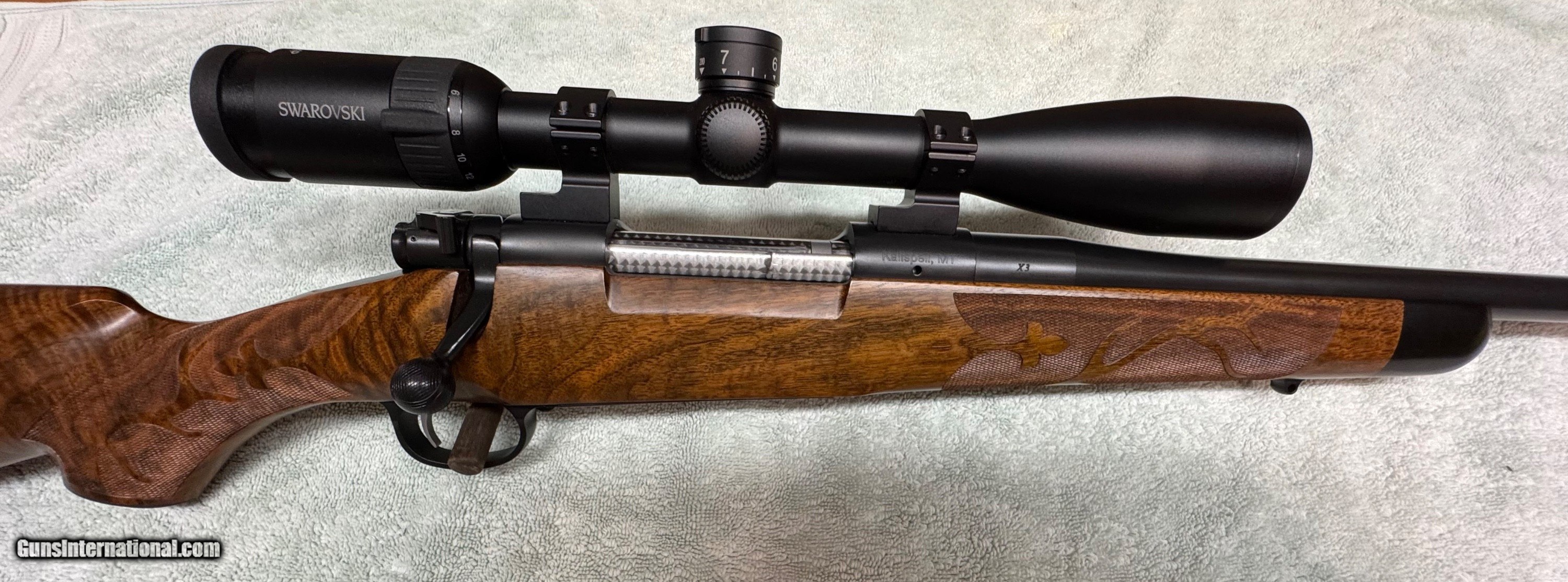 Description: This is an absolutely gorgeous custom rifle with elk antler design embedded in the checkering. There are NO dings or scratches. The barrel, action, and bottom metal are Cerakoted and the bolt has been jeweled. I has a Swarovsky Z5 3x18 scope with the ballistic turret and a Jewel trigger. I also have the composite stock that came with the rifle. SOLD Rifle Caliber: .280 Ackley Improved Manufacturer: Montana Rifle Company Model: X3 Serial Number: C19-2180 Barrel Length: 24 Condition: Perfect Metal Condition: Perfect Wood Condition: Perfect Bore Condition: Shiny |