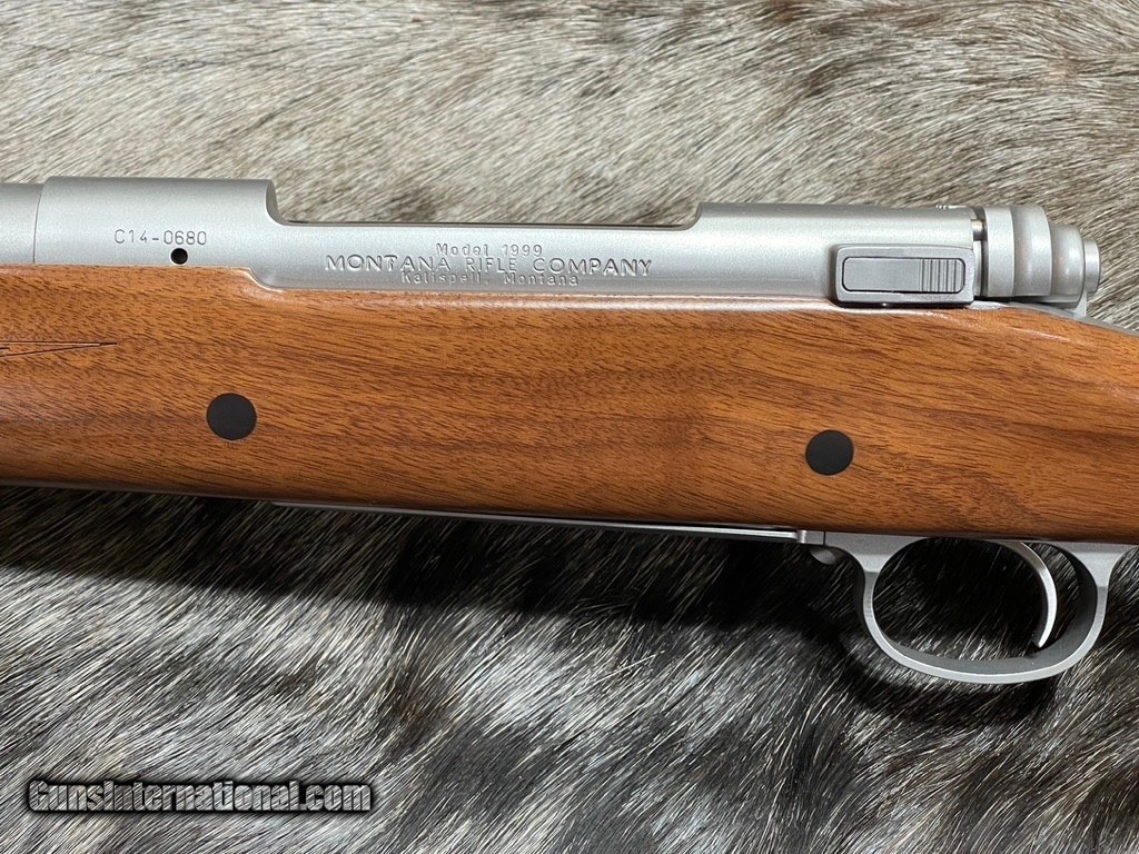 Description: NEW MONTANA RIFLE COMPANY AMERICAN STANDARD RIFLE STAINLESS (ASR-SS) IN 338 WINCHESTER MAGNUM! LAYAWAY AVAILABLE FREE AFRICAN SAFARI WITH KUCHE SAFARIS (: KUCHE.CO.ZA) INCLUDED WITH THIS RIFLE! SAFARI IS FOR 1-HUNTER / 5-DAYS / 3-ANIMALS (IMPALA, BLESBUCK, WARTHOG). SAFARI IS CUSTOMIZABLE WITH AS MANY ADDITIONAL DAYS AND ANIMALS AS YOU WANT. THE CERTIFICATE IS GOOD FOR 3-YEARS FROM DATE OF PURCHASE AND WILL BE EMAILED TO YOU. NOTE: THE SAFARI IS FREE AND DOES NOT ADD ANY COST TO THE RIFLE. BUY A SCOPE AND RINGS/BASES FROM JD OUTFITTERS AND RECEIVE FREE MOUNTING. FEATURES OF THIS GREAT BOLT ACTION RIFLE INCLUDE: