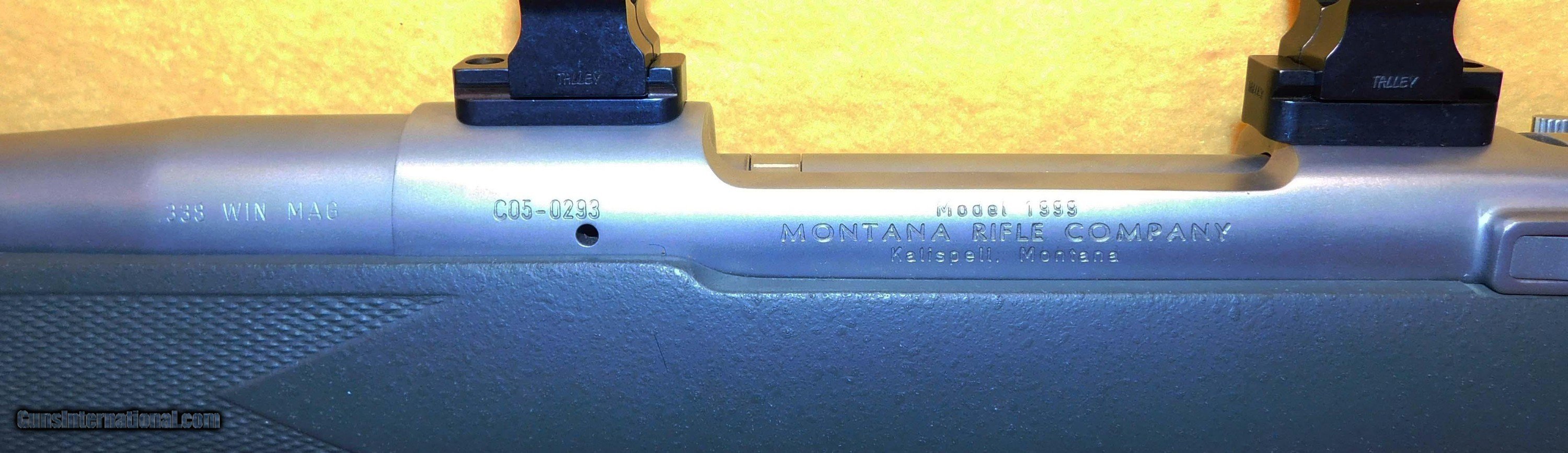 Description: MONTANA RIFLE 1999 IN .338 WIN. MAG. CAL., WITH 24" BARREL. COLOR STAINLESS STEEL. CONDITION 98% LIKE NEW. SERIAL NUMBER C05-0293. MONTANA RIFLE CO. MODEL 1999 IN .338 WINCHESTER MAGNUM CALIBER, MIRROR BORE COMES WITH TALLEY RINGS AND BASES, ALL WEATHER STOCK, 98% LIKE NEW OVERALL CONDITION, .338 WIN. MAG. AMMO AVALABUL IF PURCHASING THIS FIRE ARM CALL FOR PRICING, OUR STOCK # D3875. SOLD |