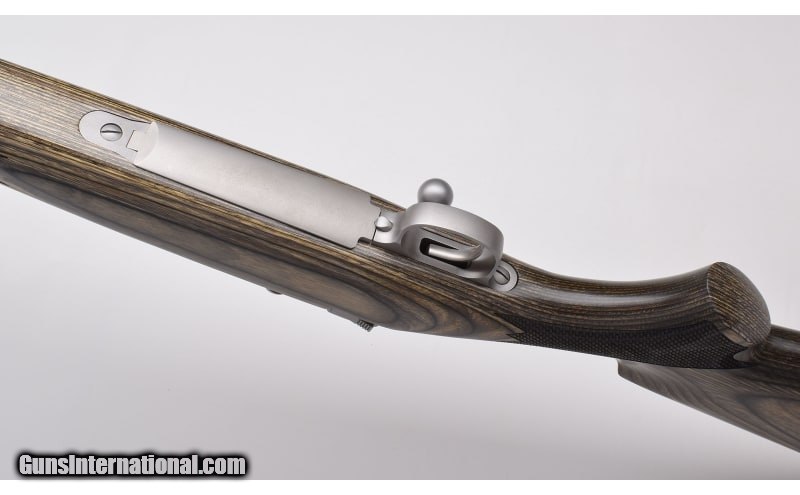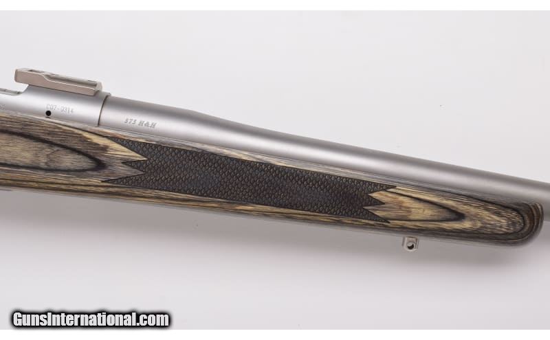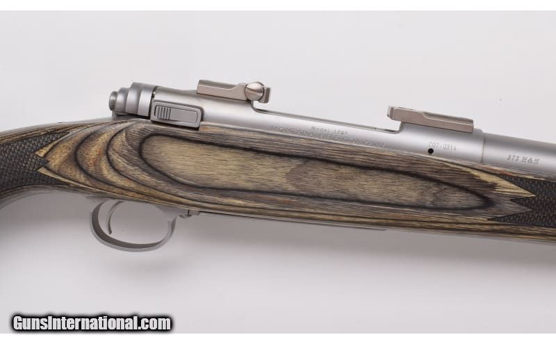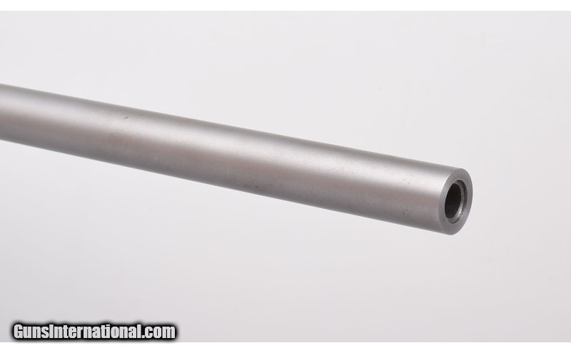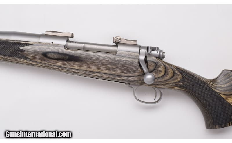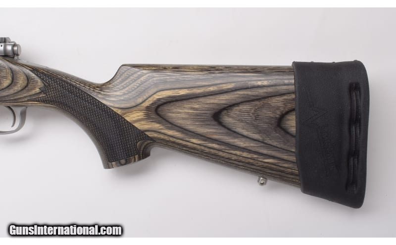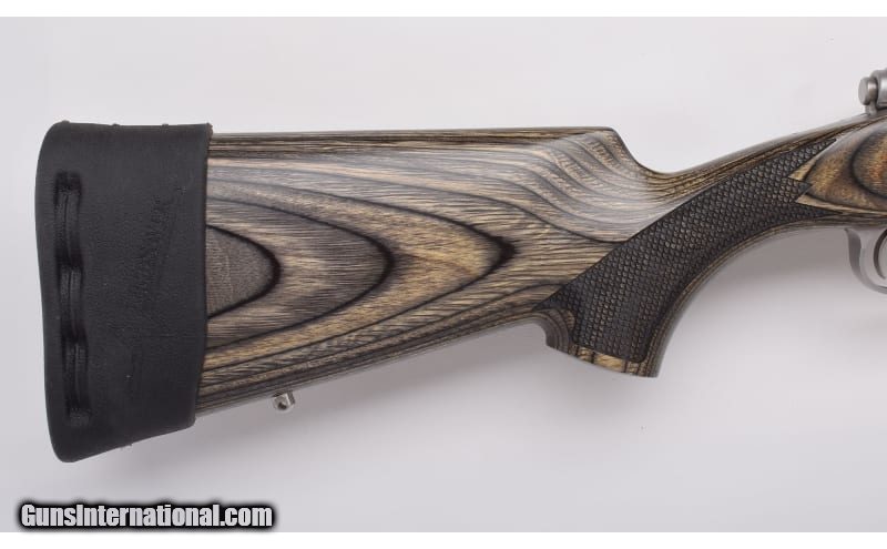 Description: Stainless construction, Mauser style controlled round feed action, Green laminate stock with fish-scale checkering. Clean rifle shows few minimal impressions, freckles and scratches, stock mounted pad exhibits some wear and softening. Includes slip-on recoil pad. Clean,sharp bore. .375 H&H Magnum SOLD Metal Condition: Matte Stainless Wood Condition: Laminate Bore Condition: "Bright, Sharp Barrels: 24" Barrel Stock Dimensions: "13 3/4"" LOP Over Limbsaver Slip-on Recoil Pad, 12 3/4"" without Butt Pad: Limbsaver Weight: 9 Lbs. 8 Oz. Sights: Scope Bases Installed Item Location: Buda, TX |