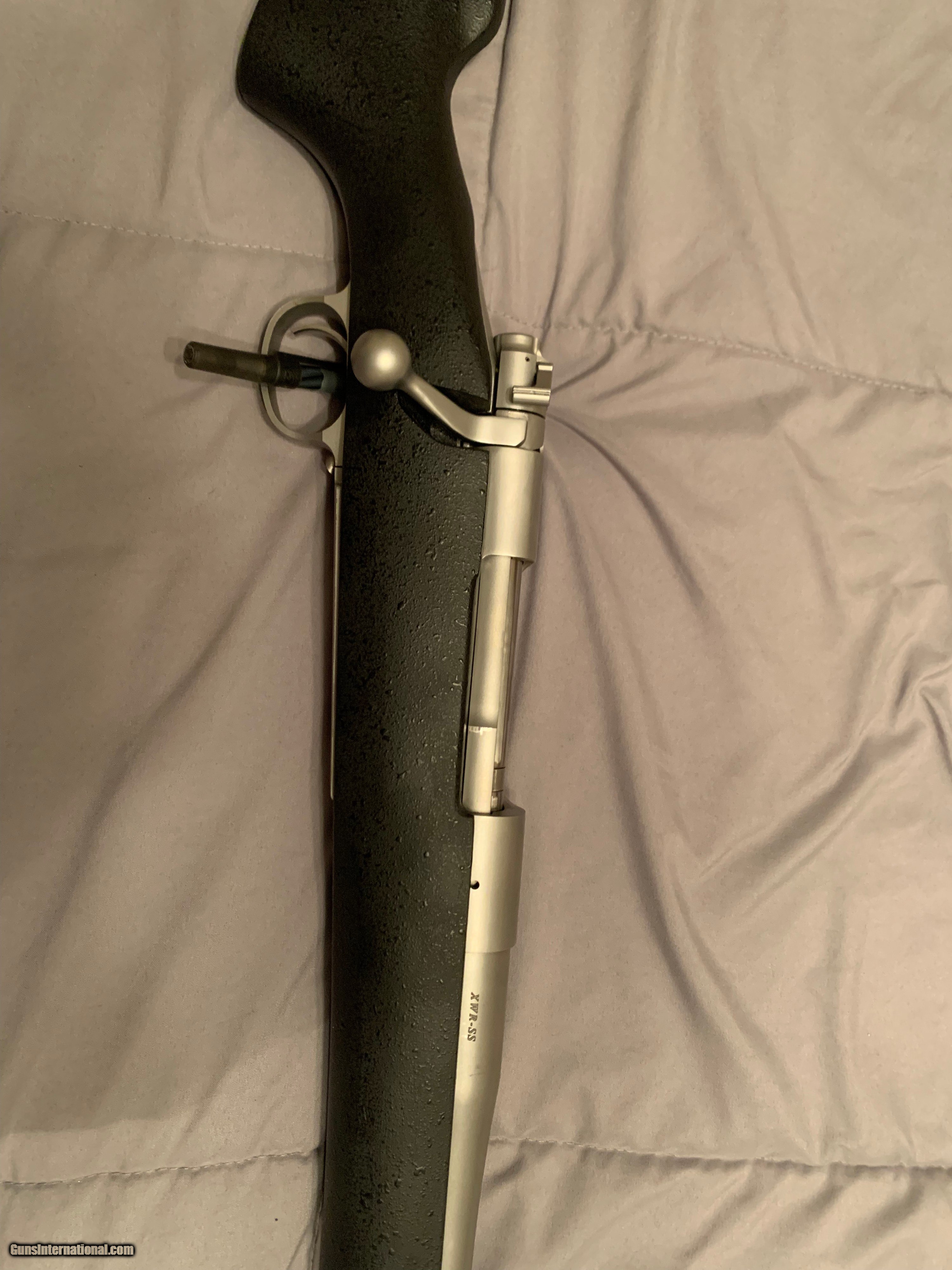 Description: Montana Rifle Company 1999 XWR-SS 300 RUM Description: Make: Montana Rifle Company Model: 1999 XWR-SS, Extreme Weather Rifle Stainless Steel Serial Number: C10-0230 Year of Manufacture: 2010's Caliber: .300 Remington Ultra Magnum Action Type: Bolt Action Rifle with Internal Hinged Floorplate Magazine Barrel Length: 26" + 2" brake Sights/Optics: The top of the receiver has two pairs of drilled, tapped holes for standard Winchester Model 70 style 2 piece bases. Stock Configuration and Condition: The stock is one-piece composite with built in aluminum bedding blocks manufactured by Bell and Carlson specifically for Montana Rifle Co, monte carlo comb with cheekpiece, inlet sling swivel mount on the belly (there is another sling mount fixed to the barrel in front of the forend), and a black Decelerator rubber buttpad. There are no chips or cracks. The LOP measures 13 1/2" from the front of the trigger to the back of the buttpad. The pad shows minor wear from handling. Overall, the stock is in Fine-Excellent condition. Type of Finish: Matte Stainless Steel Finish Originality: Original Bore Condition: The bore is bright with sharp rifling. There is no erosion in the bore. In this seller's opinion, this bore rates 10 out of 10. Overall Condition: This rifle retains about 98% of its metal finish. The crown is crisp with no visible wear. The finish on the bolt is bright and clean. The raceway shows minor visible wear typical of a stainless receiver. The action shows minor operational wear. Otherwise, there are only light handling marks on the stock. The screw heads are sharp. The markings are clear. Overall, this rifle is in excellent condition. Mechanics: The action functions correctly. As with all used firearms, a thorough cleaning may be necessary to meet your maintenance standards. I am the only shooter of this rifle and have put 60 rounds through it between range time and hunting. Shoots 3/4-1 inch groups very consistently with factory ammo. Factory break-in procedure was followed. Box, Paperwork, and Accessories: None. My Assessment The Montana Rifle Co Model 1999 is an iconic American sporting rifle modeled after the famous Pre-64 Model 70 Winchseter that has been a staple of hunters for more than 80 years; reliable, robust, and accurate, it is one of the benchmarks by which all bolt action rifles are measured. This example is a XWR-SS with a tough stainless finish, 26” barrel for maximum velocity, and durable composite monte carlo comb stock. It was made in the time when MRC barrels were famous for their good performance between 2008 and 2013. Utilizes the best features of Mauser 98s and Pre 64 Model 70s between the gassing vents, the controlled round feed, the pre-64 style one piece bulletproof trigger and others. Overall build quality is excellent. Chambered for the renowned .300 Remington Ultra Magnum, this will make an excellent longe range hunting rifle for the purchaser. The rifle rates in Excellent condition and looks great, this would make for a great cross-canyon shooting platform for elk and other tough game. Please see my photos and good luck! Shipping and Handling Will be shipped from a licensed FFL, shipping cost is $100 to the lower 48 states. Local pickup by arrangement only. Payment Will accept cash, check, USPS Money Order etc. No credit cards please. Price: $1,400 SOLD Rifle Caliber: .300 Remington Ultra Magnum Manufacturer: Montana Rifle Co Model: 1999 XWR-SS Condition: Excellent Bore Condition: New |
