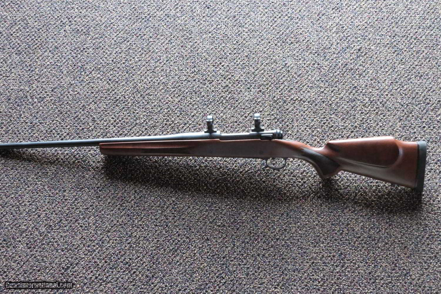 Description: Montana Rifle Company Model 1999 ASR 22-250 Friends of the NRA edition. The American Standard Rifle (ASR) is a classic rifle with matte blued chrome moly steel barreled action, with American Black Walnut stock. The 22 inch barrel has a 1 in 12 twist and has a weight of 7lbs 2oz. Comes with bases and rings. This rifle appears to be unfired other than factory firing. Shipping w/insurance $35 SOLD |