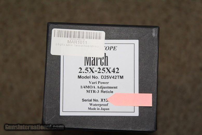 Description: Weaver Rifles Custom 28 Nosler . Test fired only. Defiance Deviant Light Weight action. Brux #3 8½ Twist finished 25” plus Hawkins 2 port muzzle brake. Interrupted Flutes. McMillan Classic stock with 13 5/8”LOP. Hawkins bottom metal. Stock painted black with fine tan webbing. All metal parts ceramic coated black with tan accents. Jewel trigger set 2lbs. Rifle weights 7lbs 6 ozs without scope. March 2.5X-25X42 scope. $7000.00 with scope or $5500.00 without scope, delivered to FFL holder in lower 48. SOLD Manufacturer: Defiance Machine Model: Deviant Caliber Info: .284 Chambers: 28 Nosler Condition: New Barrels: Brux Barrel Type: Stainless Steel Action: Defiance Deviant Triggers: Jewell Stock: McMillan LOP: 13 5/8 Weight: 7lbs. 6 ozs.w/o scope Sights: March 2.5x25x42 |