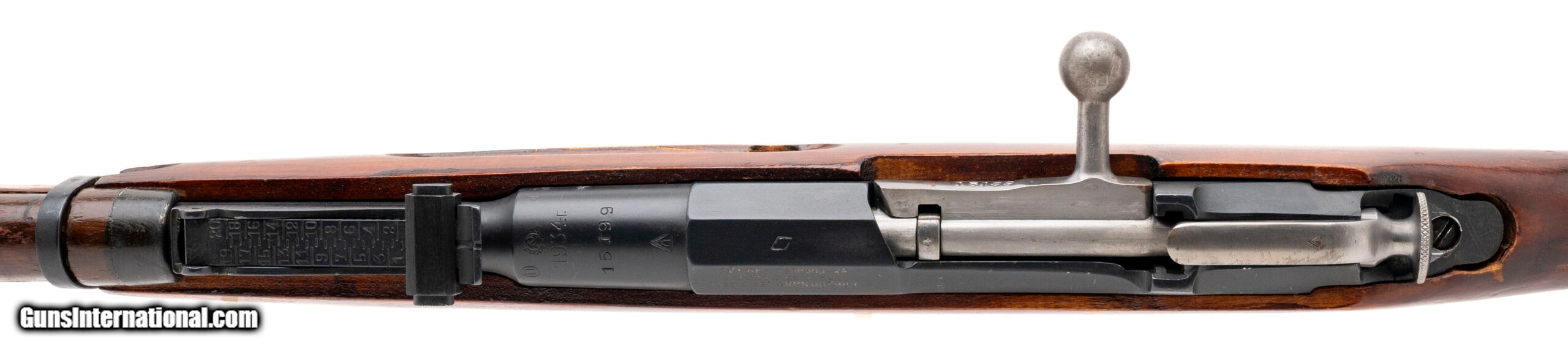 Description: "Serial No. RMN007989 (IMPORTER), made in 1934, 7.62x54R, 29" round barrel. Bore is good with light frosting visible in the grooves. Original serial numbers are matching, 98% arsenal finish remains. Stock is very good with scattered areas of varnish loss noted. Action is smooth and functions correctly. SOLD |