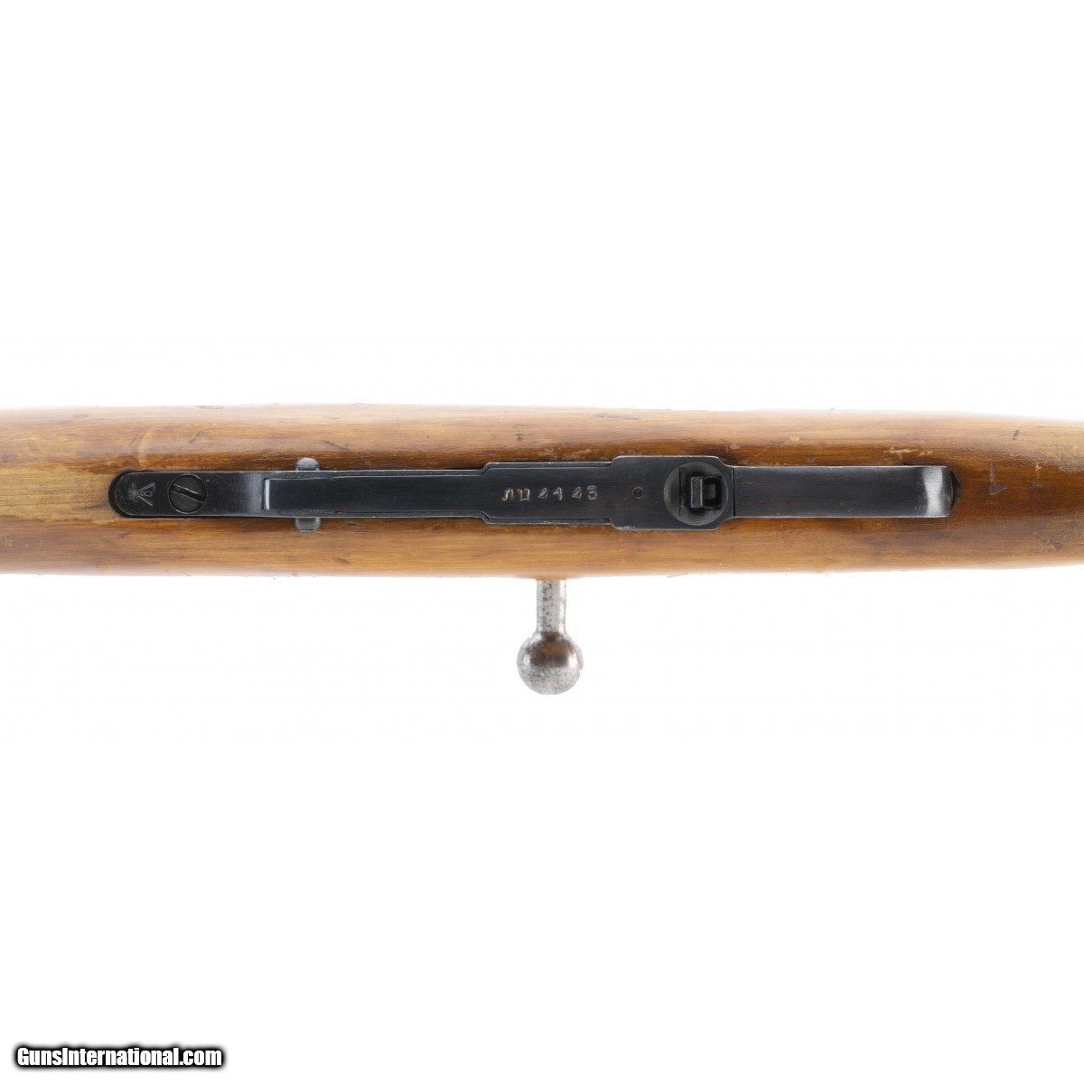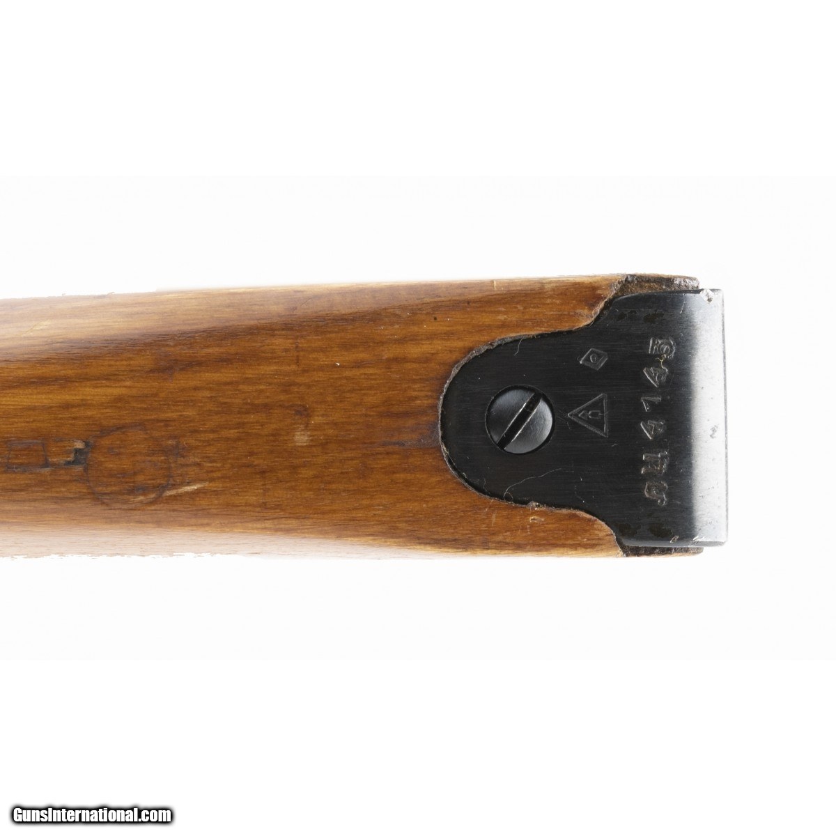 Carbine with folding bayonet made in 1946. Bore is excellent. Serial numbers are matching. Stock has an area of minor varnish loss on under side, otherwise very good overall condition.