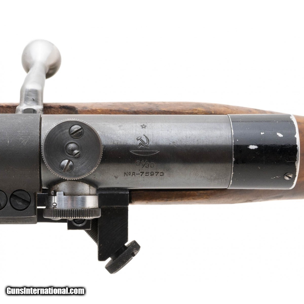 Description: " Soviet Model 1891/30 PU sniper rifle made by Izhevsk in 1938. The optic glass is clear and the reticle is crisp. The 30' barrel has an excellent bore. Comes with sling and cleaning rod. Stock has handling wear and has a duffel cut just behind the rear sight assembly. The rifle's overall condition is good+. SOLD |