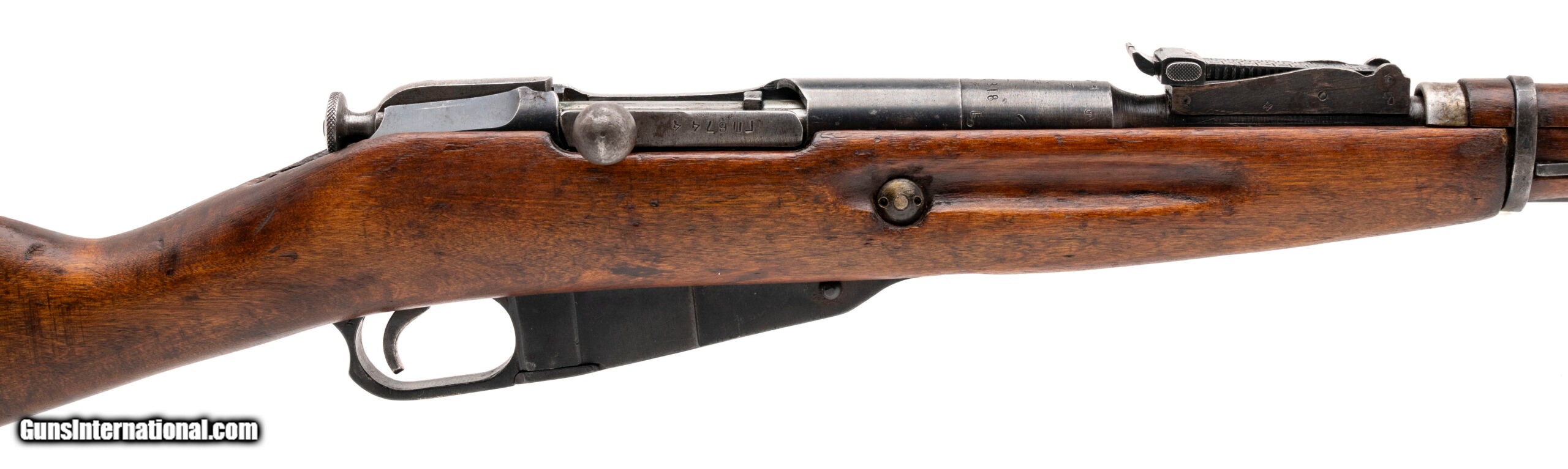 Description: "Serial No. R0818, manufactured in 1943 at the Tula Arsenal, chambered in 7.62x54R with a 28 ¾" round barrel. Originally configured as a PU sniper, the left side of the receiver shows evidence of scope mount holes that have since been filled. Metal finish has thinned to a grey patina, though factory markings on the receiver remain sharp and clear. Serial numbers are non-matching. Stock exhibits expected handling wear but remains in very good overall condition. Action is smooth and functions correctly. A solid example of a wartime Mosin-Nagant. SOLD Curio/Relic: Yes |