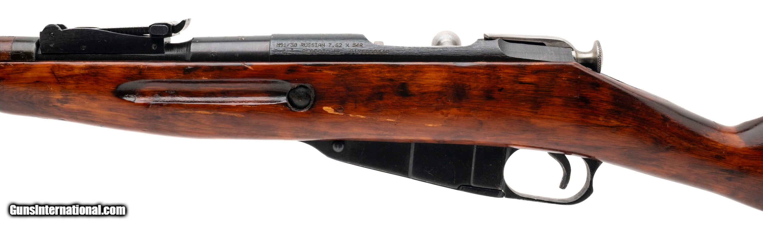 Description: "Serial No. 9130020448(importer), made in 1943, 7.62x54R, 29.5" round barrel. Bore is bright and shiny with strong rifling. Original serial numbers are matching, left side of the receiver is import marked. Light handling wear is visible on the stock and finish. Action is smooth and functions correctly. SOLD Curio/Relic: Yes |