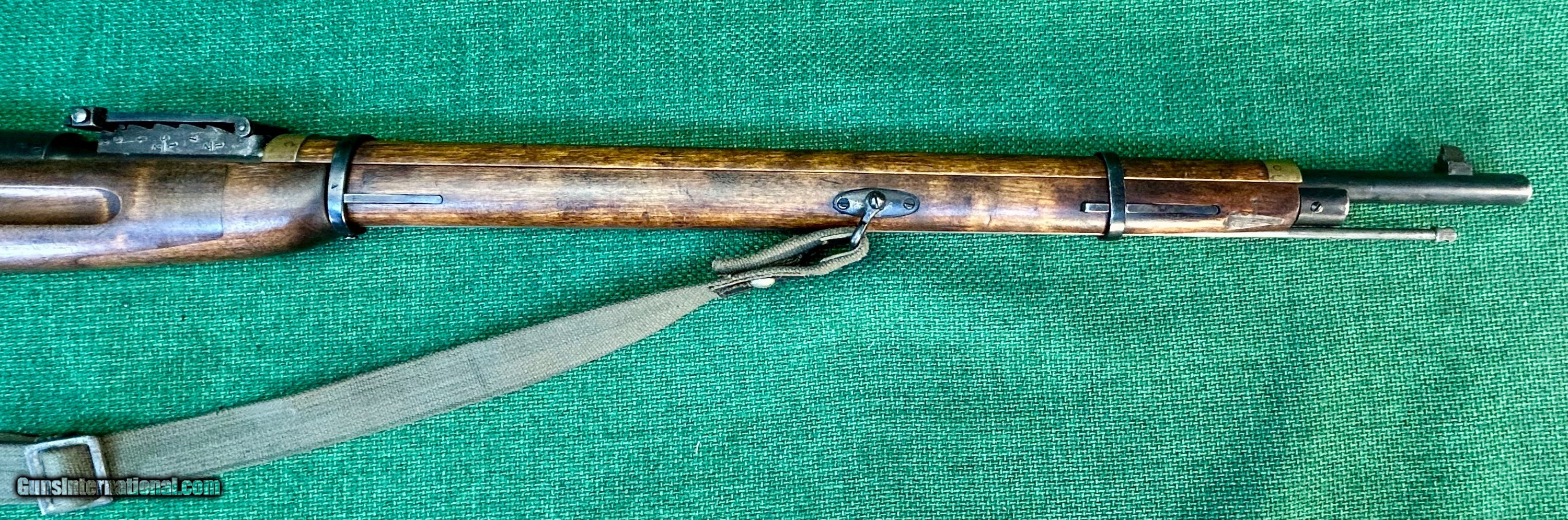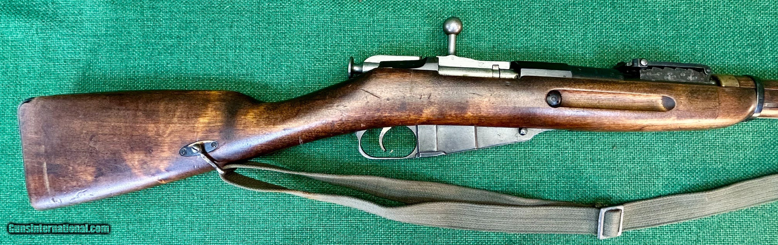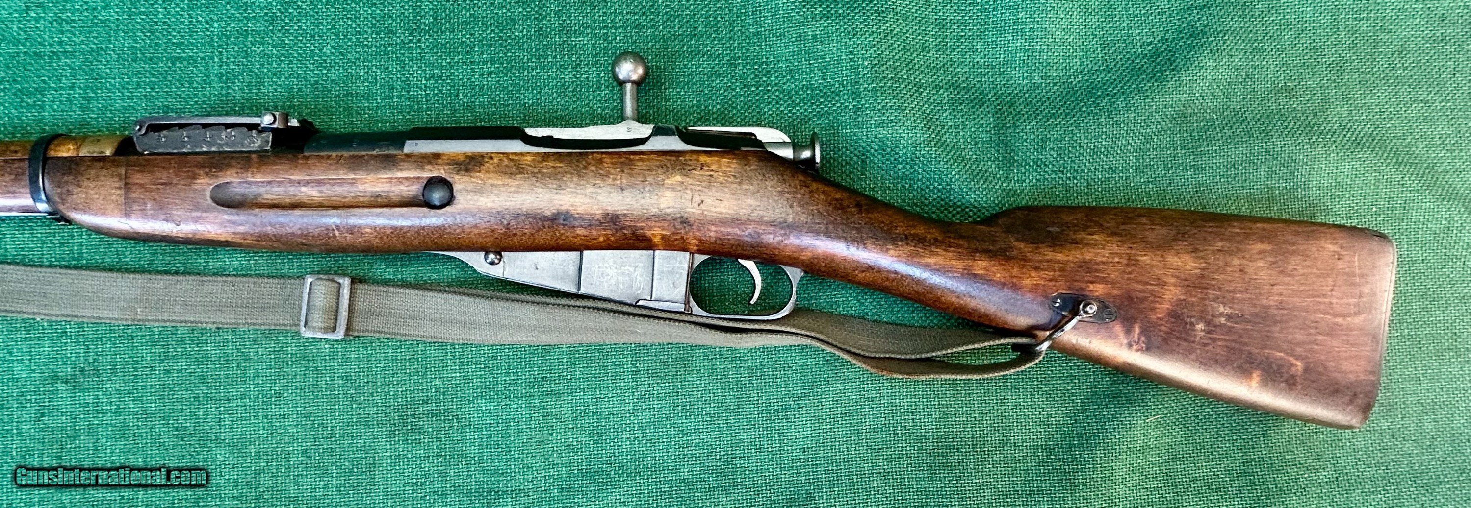 Description: This 1924 Russian Dragoon is chambered in 7.62X54R and has a 29" barrel. [SA] stamp located on left side of barrel shank near receiver as well as a Finn "41" stamp on right side of barrel shank. This rifle also has a Cossack KA3 rear sight. This rear sight was also lined out on the left side by the Finns and restamped on the right. The bore of this rifle shows frost and debris in the grovves, but strong rifling and is counter-bored. There are no import marks seen on the outside of this rifle. The bluing on this rifle is excellent. The stock is wartime spliced Finn Dragoon length stock. There is a crossed cannons cartouche on the right side of buttstock. Bolt numbers match barrel serial number. Buttplate is unnumbered and floorplate's number is lined through. Trigger is excellent. Rifle comes with SA marked Finnsling and Finn sling hangers. Please see pictures for details. We accept USPS Money Order, cashier’s check, or credit card for immediate shipping. Please note credit card sales are subject to an additional 3% fee. US shipping only. Shipping costs are actual postage, with adult signature required, to your FFL 01 or 03. We will pay the insurance for the amount sold. All items are for sale locally, so make contact as soon as you make your decision. Inquiries will be handled in chronological order. All postings will remain active until funds are received. We appreciate funds to arrive within 10 days of verbal agreement. After such time we will entertain other inquiries in the order they were received. SOLD Curio/Relic: Yes Rifle Caliber: 7.62x54mmR Manufacturer: Mosin-Nagant Model: M91 Dragoon |