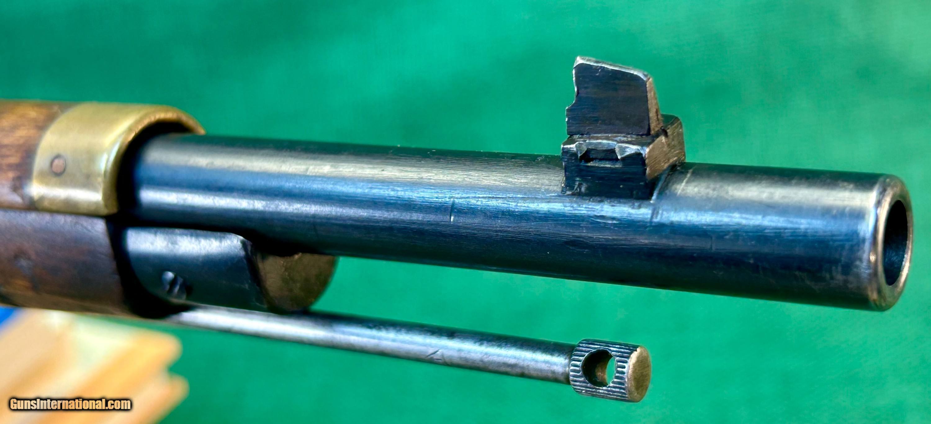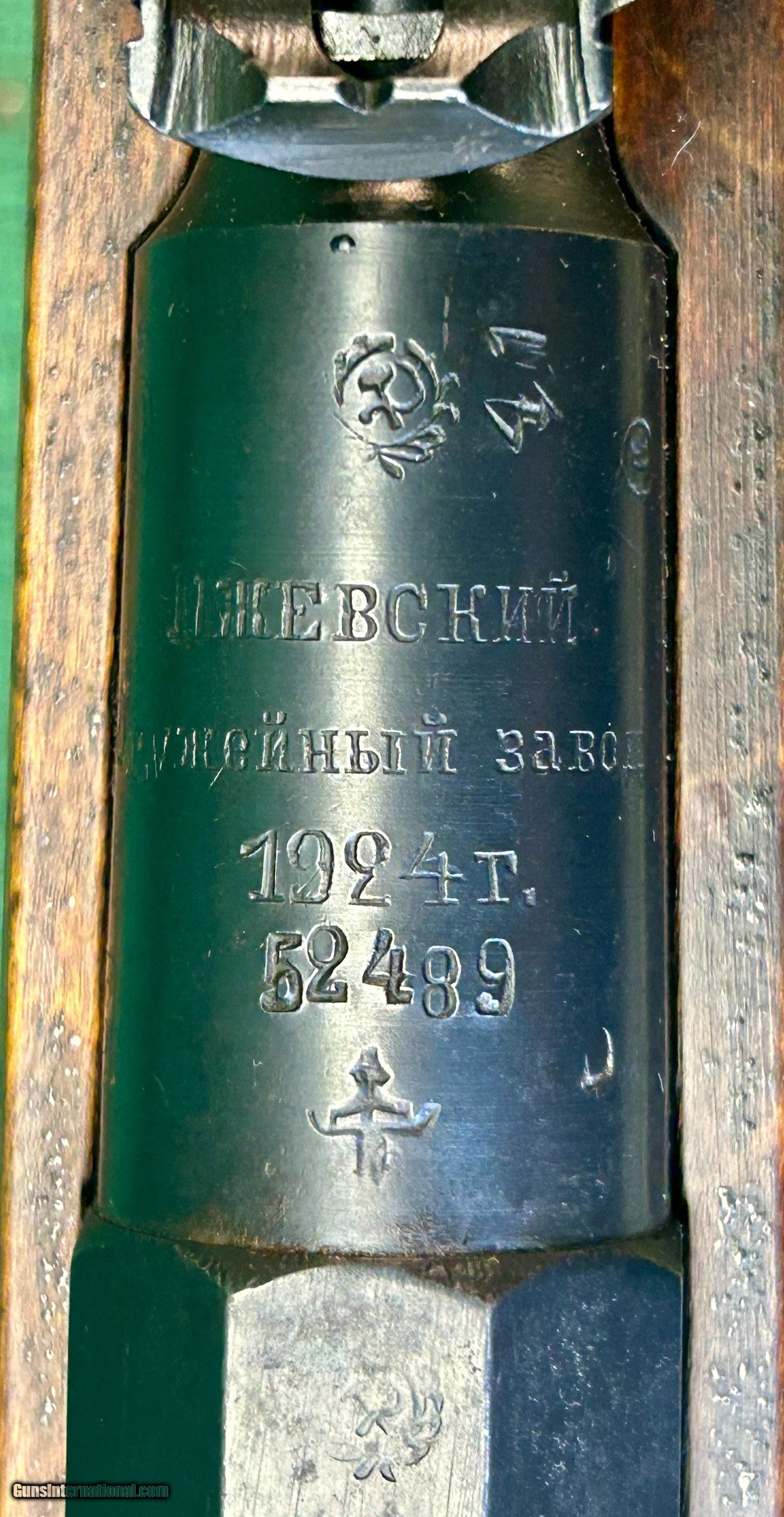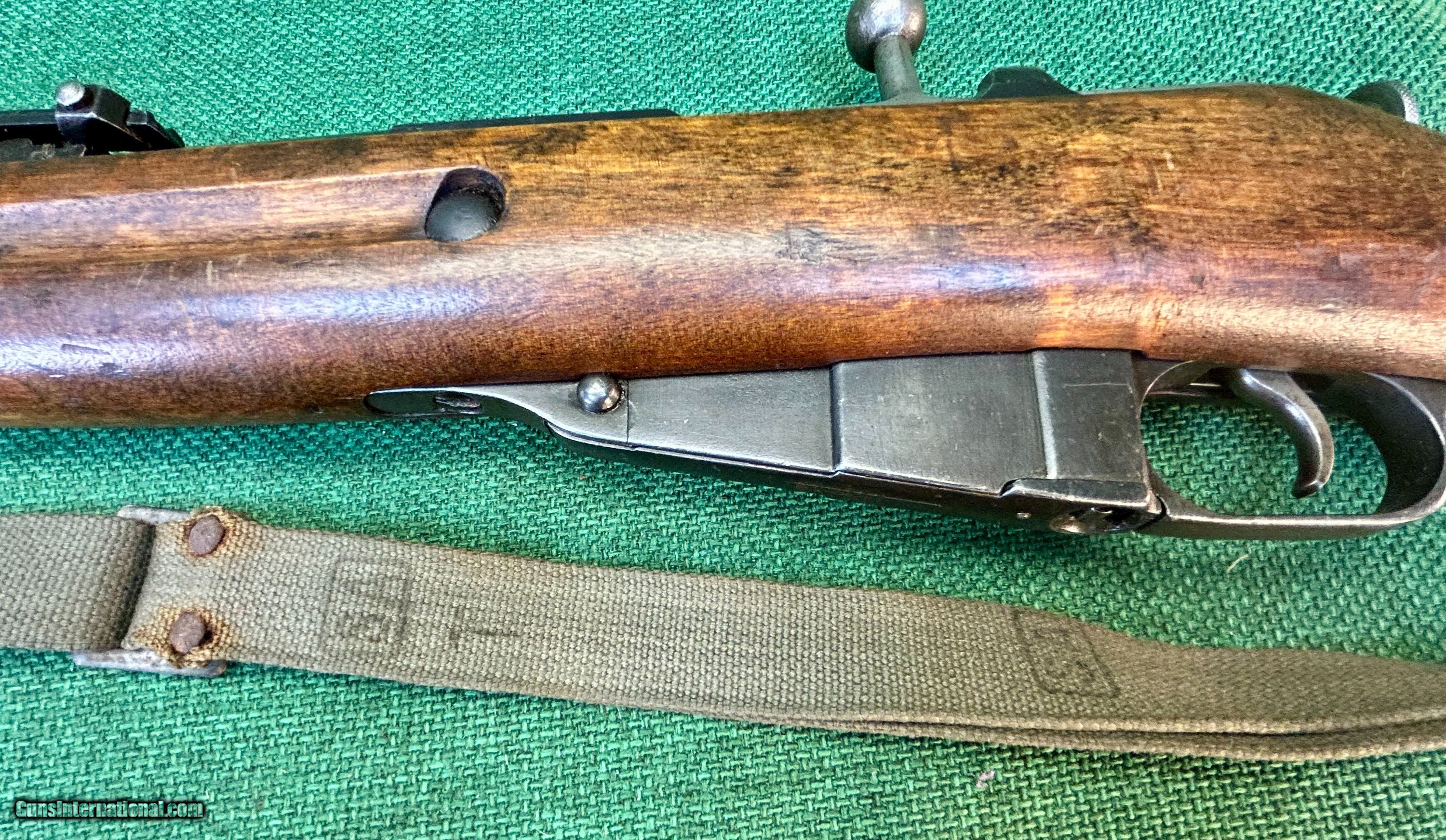 Description: This 1924 Russian Dragoon is chambered in 7.62X54R and has a 29" barrel. [SA] stamp located on left side of barrel shank near receiver as well as a Finn "41" stamp on right side of barrel shank. This rifle also has a Cossack KA3 rear sight. This rear sight was also lined out on the left side by the Finns and restamped on the right. The bore of this rifle shows frost and debris in the grovves, but strong rifling and is counter-bored. There are no import marks seen on the outside of this rifle. The bluing on this rifle is excellent. The stock is wartime spliced Finn Dragoon length stock. There is a crossed cannons cartouche on the right side of buttstock. Bolt numbers match barrel serial number. Buttplate is unnumbered and floorplate's number is lined through. Trigger is excellent. Rifle comes with SA marked Finnsling and Finn sling hangers. Please see pictures for details. We accept USPS Money Order, cashier’s check, or credit card for immediate shipping. Please note credit card sales are subject to an additional 3% fee. US shipping only. Shipping costs are actual postage, with adult signature required, to your FFL 01 or 03. We will pay the insurance for the amount sold. All items are for sale locally, so make contact as soon as you make your decision. Inquiries will be handled in chronological order. All postings will remain active until funds are received. We appreciate funds to arrive within 10 days of verbal agreement. After such time we will entertain other inquiries in the order they were received. SOLD Curio/Relic: Yes Rifle Caliber: 7.62x54mmR Manufacturer: Mosin-Nagant Model: M91 Dragoon |