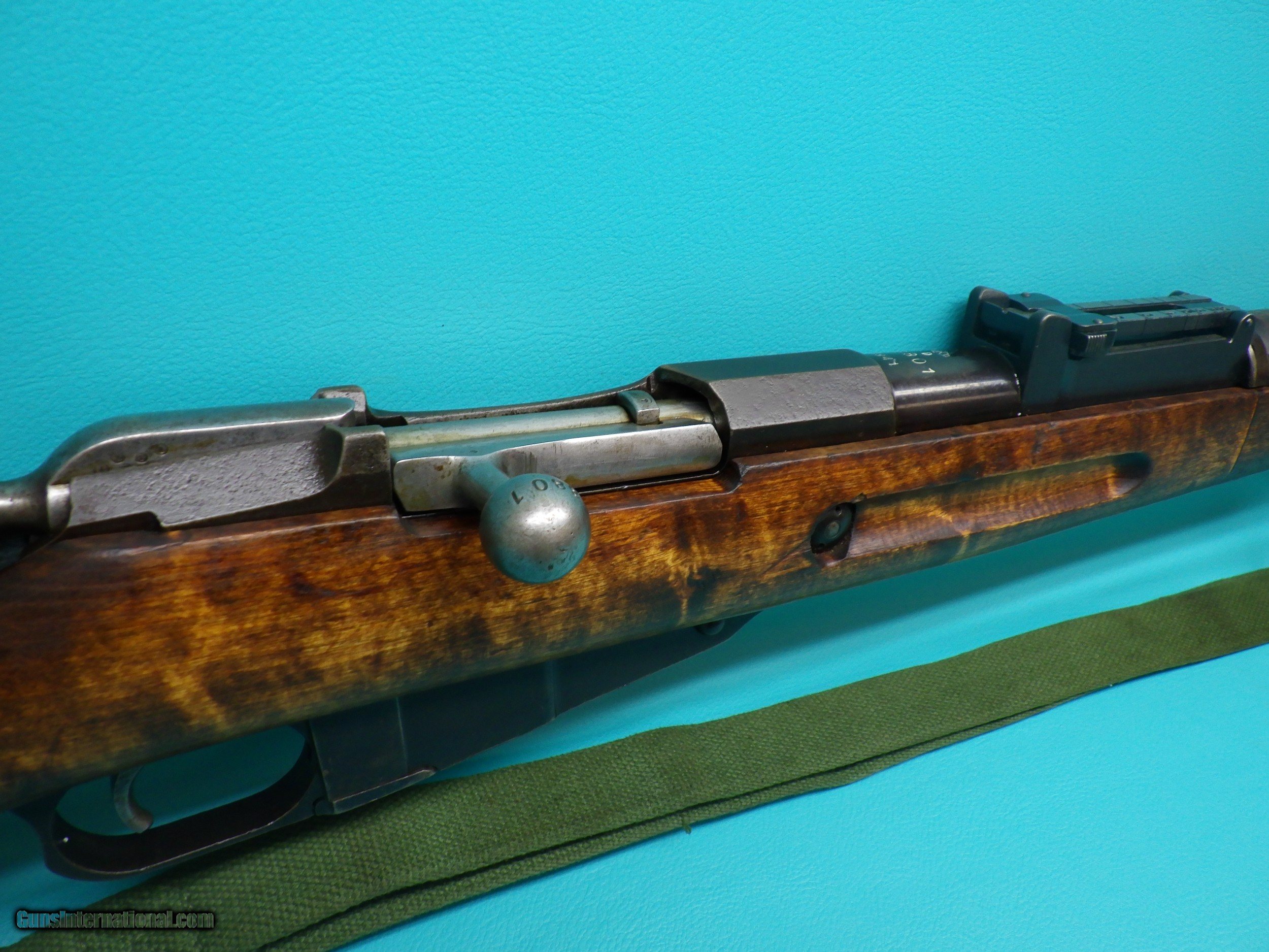 Description: ***SOLD*** Finnish-made Mosin-Nagant M39 7.62x54r bolt action rifle, made in 1941 at the Jyvaskyla arsenal. This rifle features the classic Mosin-Nagant bolt action mechanism, upgraded by the Finnish Army, with a new stock, upgraded sights and a hex-shaped receiver. The rifle is in great overall condition with some minor finish wear in small areas, a smooth action and a nice bore, only minor roughness in small spots. The rifle appears to be all matching. Please refer to the photos for overall condition. A great collectible! C&R OK. Shipping $60.00 SOLD Rifle Caliber: 7.62x54mmR Manufacturer: Mosin-Nagant Model: M39 Serial Number: 38801 |
