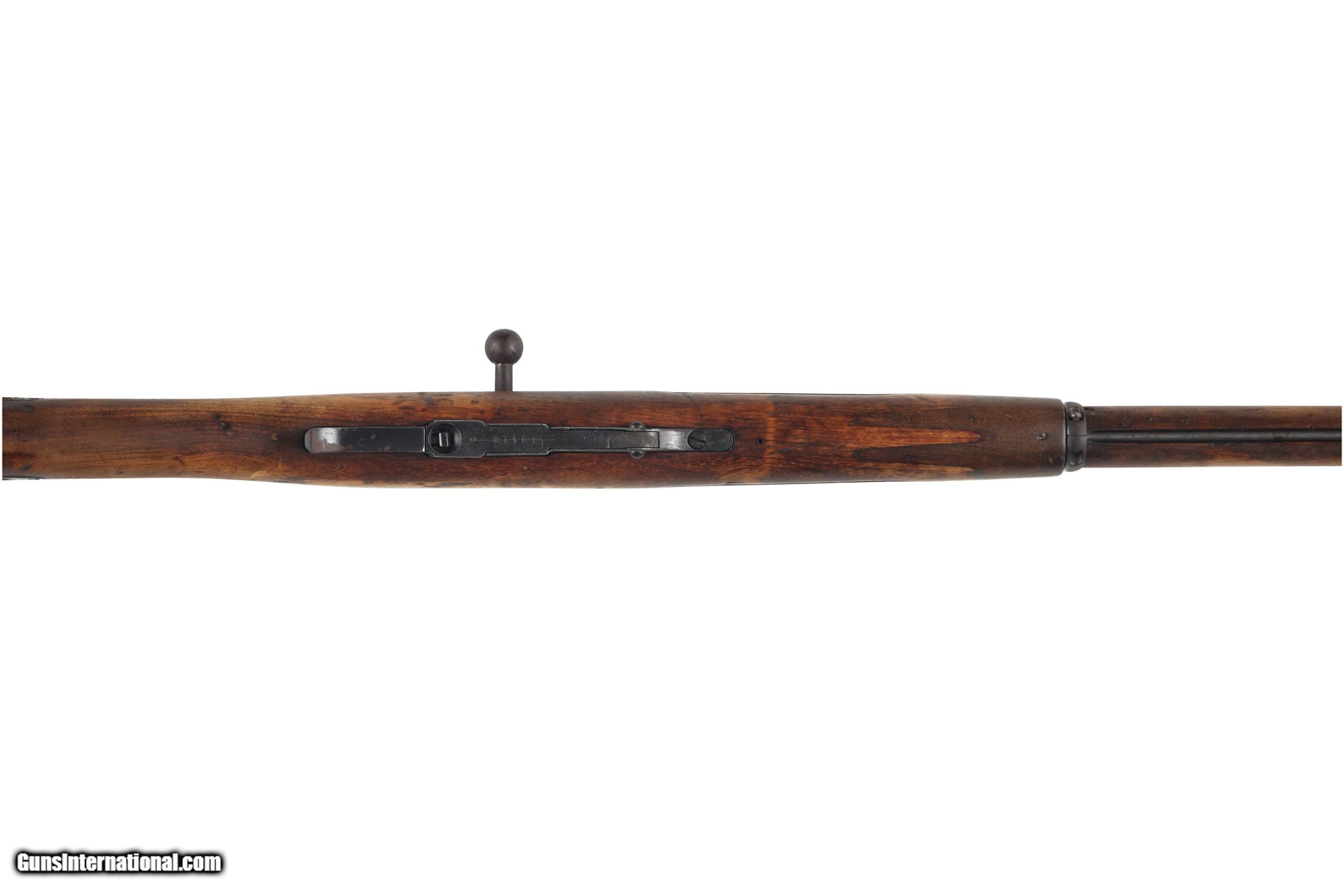 Description: Officially named the 3-Line Rifle M1891, the Mosin rifle is one of the highest produced military rifles in existence, with over 37 million made. Through their long lifespan they have been in use by first the Russian Empire, then the Soviet Union, followed by all of their satellite nations as well as seeing use by many nations across the world as surplus and wartime aid. This example had started its life as an Imperial Russian M91, Made at the Tula factory in 1898. At some point in Russian service, before the conversion to M91/30, this rifle was captured or purhased By the Finnish, who counterbored the muzzle to maintain accuracy standards and remove worn out rifling, then replaced the stock with a new stock of Finnish make. Overall condition of this rifle is fair to good, with no major faults to the stock but mild corrosion found scattered across the metal parts. the bore shows present and strong rifling with mild evidence of corrosion and rounded corners to the lands and grooves. Manufactured in: Russia Hand: Right Hand Action Finish: Blue Metal Finish: Original Barrel Length: 31 1/2 Inches Barrel Condition: Good Stock Finish: Original Stock Condition: Good Type of Butt: Steel Buttplate Grip: Straight Grip SOLD Manufacturer: TULA Model: M91 Caliber Info: 7.62 x 54R Condition: Preowned Metal Condition: Fair Action: Bolt Action Triggers: Single LOP: 13 1/2 Finish: Original Weight: 9.5 lbs Manufacture Date: 1898 Case: NONE |