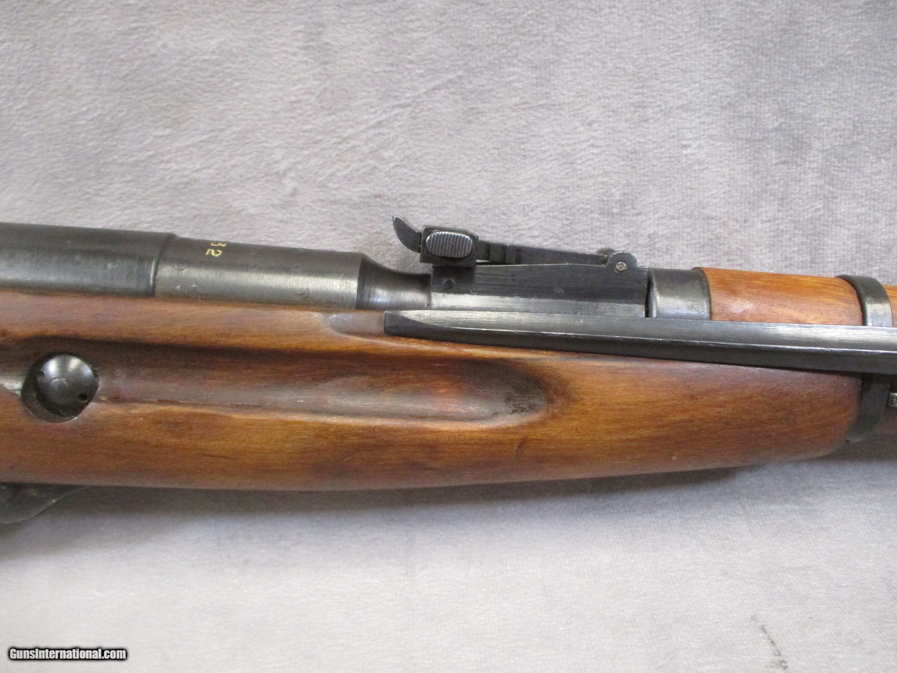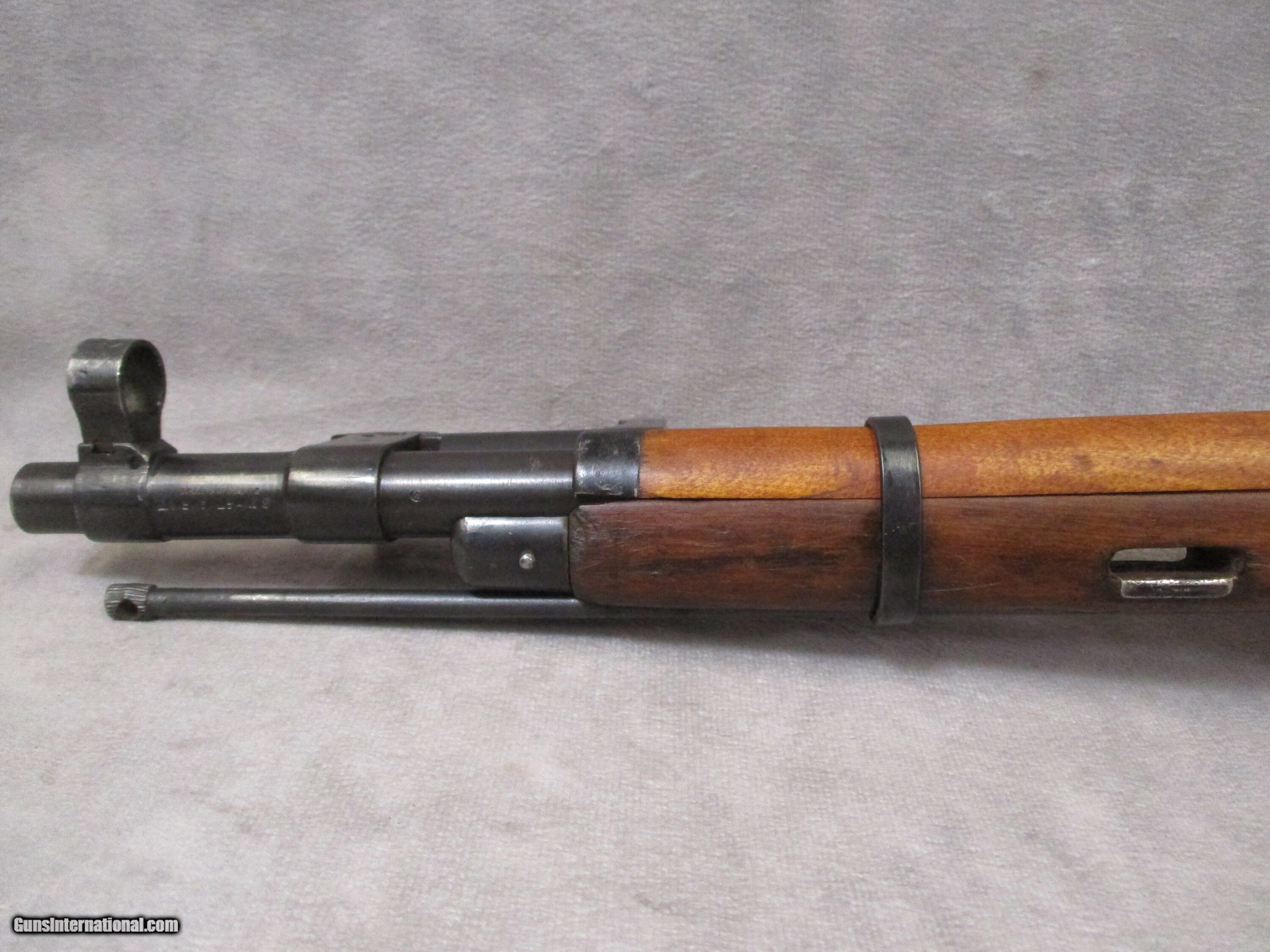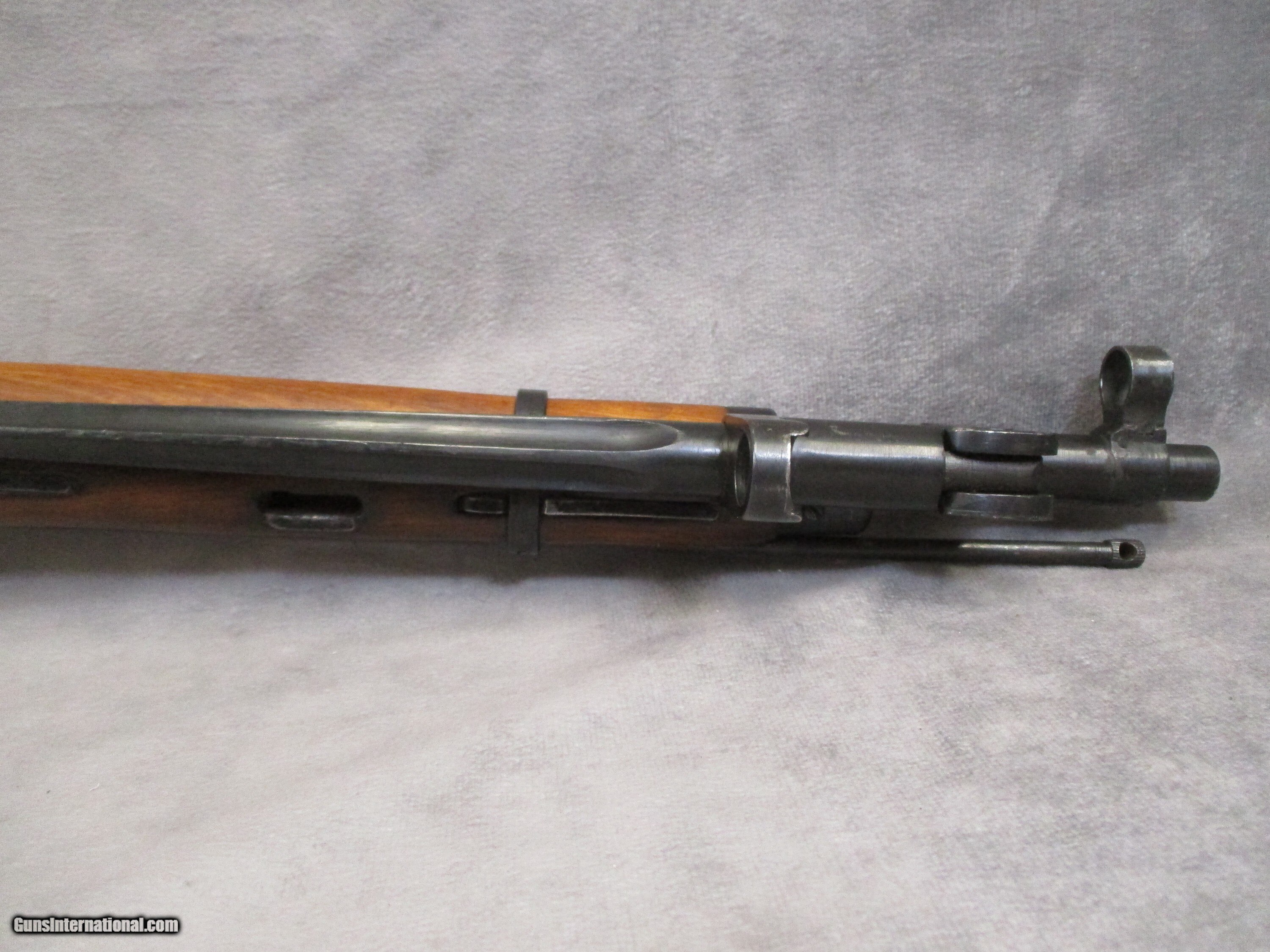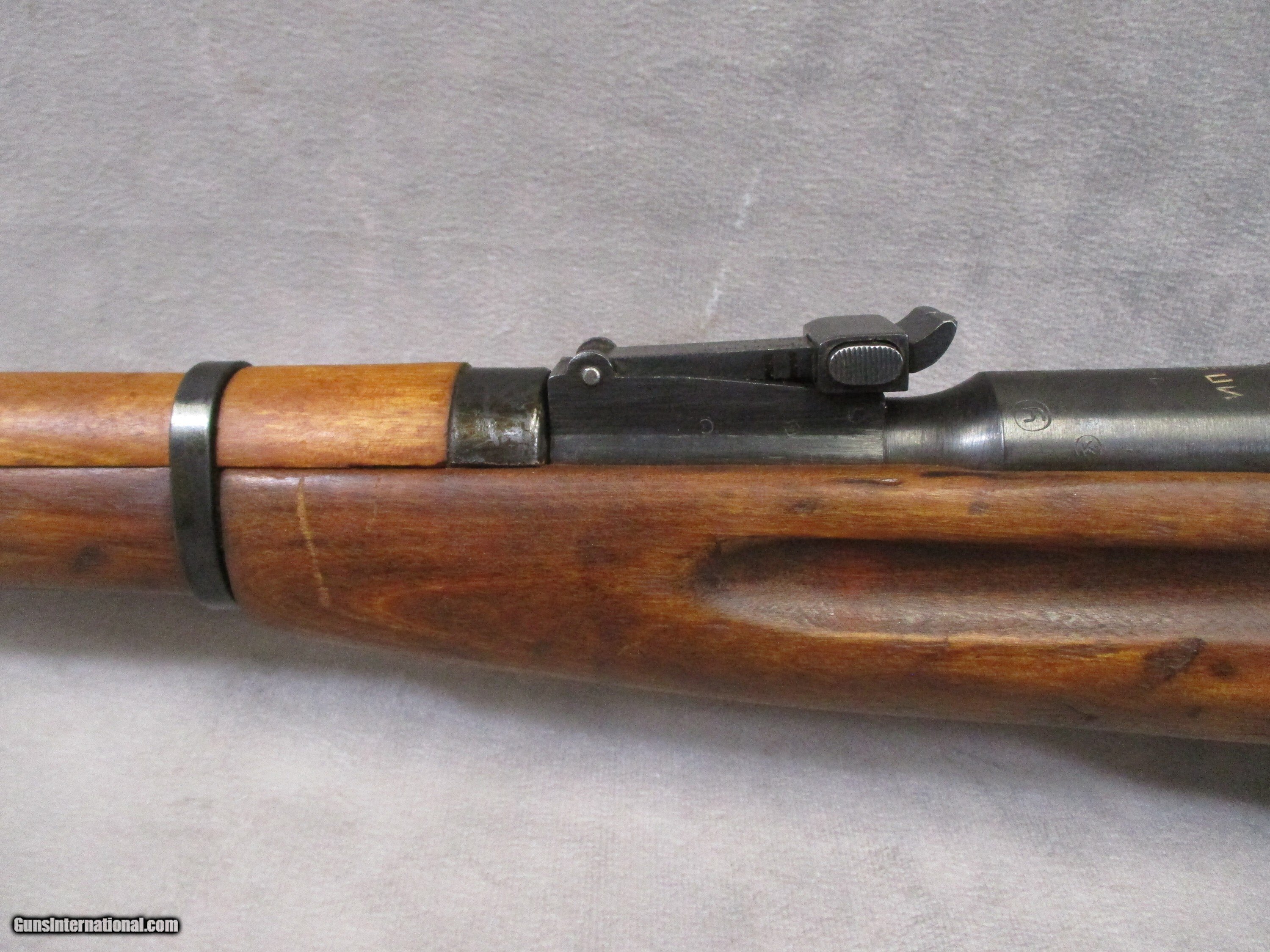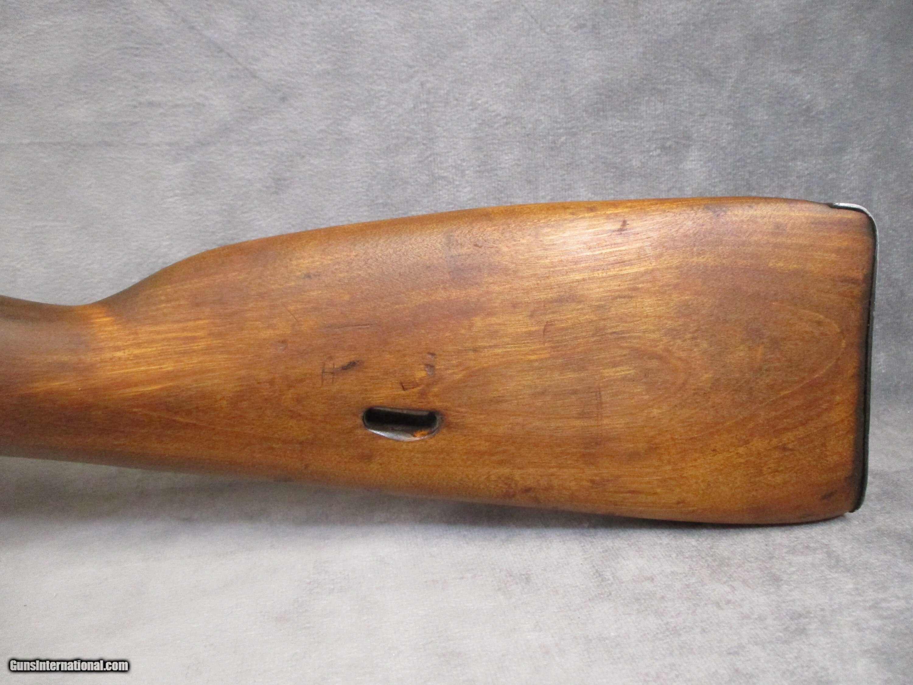 Description: The Mosin-Nagant is the most mass-produced military bolt-action rifle in history with over 37 million units produced since its adoption by the Russian military in 1891. The Mosin-Nagant has probably seen more action than any other military firearm in history. Indeed, the Wikipedia article on the Mosin lists no less than 41 separate conflicts from the Philippine Revolution (1896 – 1898) to the currently ongoing Russian invasion of Ukraine (both sides, no doubt with the Ukrainians making better use of them). The reason for the Mosin’s longevity is simple – it is easy to operate, repair, clean, has an acceptable level of accuracy, and the ammunition its uses, the 7.62x54R, is still in use by several nations today (including Russia) ensuring a good supply of ammunition for the foreseeable future. This rifle was produced at the Izhevsk Mechanical Factory in 1945. Unlike the U.S. where the receiver is the firearm, the Russians consider the barrel to be the firearm since that is where the firing takes place. This is why Mosin barrels have most of the markings while the receivers have few. The barrel here features the usual markings found on rifles like the 91/30 and M44. The wheat with hammer and sickle is self-explanatory, while the ? next to the year 1945 stands for ??? or “year” in Russian. The arrow inside the triangle is the official symbol of the Izhevsk factory itself. The “Y in a circle” was the stamp used for a rifle that passed the high-pressure (420 MPa) proofing test. After this test was performed, the rifle/carbine then had to pass two more before being accepted for military service. The second test involved the usage of two hot (324 MPa) cartridges to see how well the bolt group interacted with the receiver. Passing this test resulted in the Mosin being given an “O in a circle” stamp (right side of the barrel shank, partial). The third and final test was an accuracy test; passing that earned the Mosin a “K in a circle” stamp (left side of the barrel shank). The “1 in a triangle” indicates the rifle was rebuilt or repaired by Arsenal No. 109 at Irkutsk at some point. The very small “H in a circle” (both on the lower right of the barrel shank and on the receiver) may represent another arsenal (or a repair depot) though the identity and location are currently unknown. Many Mosin rifles were repaired or rebuilt by different arsenals during their service lives, particularly during World War 2. Given the secretive nature of the Soviets, more than a few of the symbols found on their firearms remain unidentified even in the 21st century. Unlike many Mosin-Nagant rifles and carbines that have been fired with corrosive primers, the bore of this M44 is in excellent shape. All visible metal parts have the correct Izhevsk “arrow in triangle” stamp. The bolt exhibits some rust, particularly on the bolt knob. The stock exhibits the usual wear and tear expected of a former Soviet Bloc rifle. The rear sling escutcheon is missing. A small crack on the lower left side of the fore end has been repaired. The butt plate and floor plate have been force-matched to the rifle. The lower butt plate screw was installed at an angle as shown in the pictures. The bluing remains in superb shape despite the abuse the carbine was subjected to over the course of its military service. The M44 was imported by C.A.I. so it does have import markings. Fortunately, this appears to be an earlier import with the small markings on the barrel. These are not as visually obnoxious as the larger markings found on later imports. Rifle Caliber: 7.62x54mmR Manufacturer: Izhevsk Mechanical Plant; Izhevsk, Udmurtia Republic, Volga Federal District, USSR Model: Model 1944 Carbine Serial Number: ??932 = IP932 Barrel Length: 20.25 inches (514.35 mm) Bore Info: 4 grooves, 1:9.45 inches (1 in 240 mm) RH twist. Ejectors: Manual ejection via bolt operation Condition: Used - Good Barrels: Carbon Steel Barrel Type: Carbine type Action: Bolt-Action Rifle, Mosin-Nagant Action, Push-feed. Triggers: Standard Stock: Wood, straight grip Fore End: Wood Butt Pad: Metal plate LOP: 13.125 inches (333.375 mm) Finish: Blue Weight: 8 lbs. 12.9 oz. Sights: Rear ladder graduated from 100 m to 1000 m, front hooded fixed post (drift adjustable), sight radius 16.375 inches (416 mm). Manufacture Date: 1945 Price: $600.00 Contact Seller |