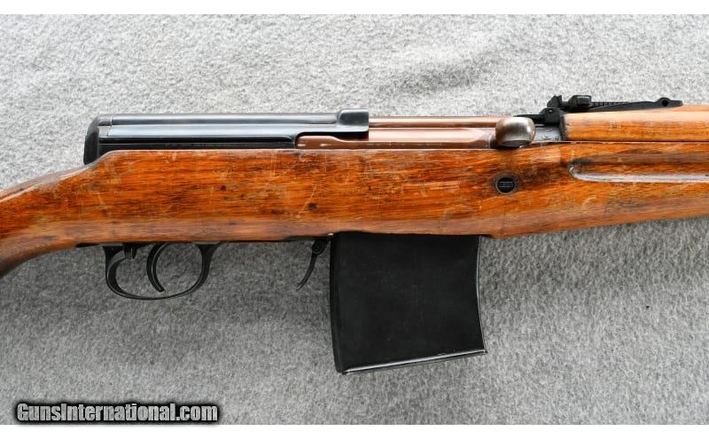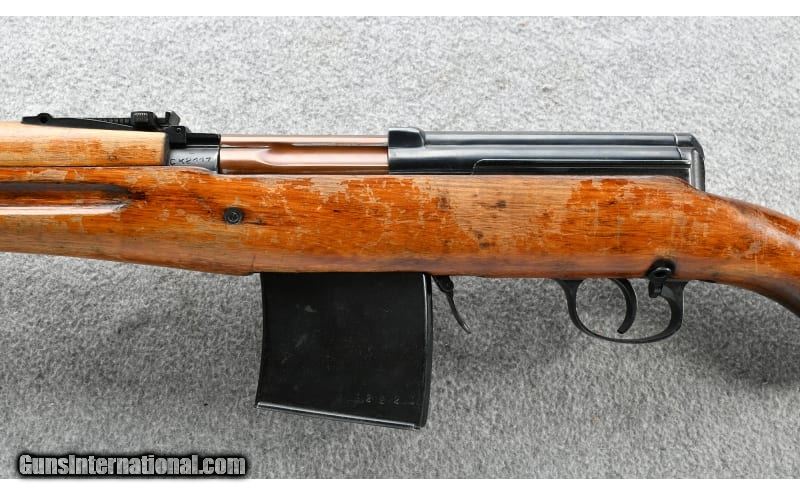 Description: The SVT 40 was Russia's semiauto battle rifle of WWII. Although early versions had numerous issues with metallurgy and manufacturing specifications with hardships of the war contributing. It was and is a sound design and played a distinctive role in the development of modern semi-automatic firearms. 7.62x54R SOLD Chambers: 7.62x54 Russian in a ten round detachable box magazine semi-automatic rifle Metal Condition: "Good, with a few scuffs and marks Wood Condition: "Fair, shows finish loss, various scratches and scuff marks Bore Condition: Sharp and bright Barrels: 24" with muzzle brake Triggers: Single Stock Dimensions: 13" LOP Fore End: "Vented hardwood upper handguard, sling swivel and vented piston cover Butt Pad: Stamped metal Weight: 8 lbs. 10 oz. Sights: "Hooded front post, tangent leaf rear Item Location: Grand Junction, CO |