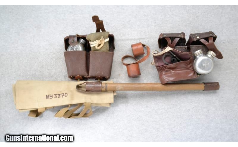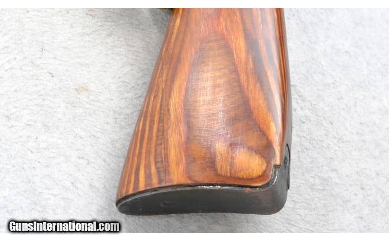 Description: This Mosin Nagant Model 91/30 1939r is a right hand bolt action rifle in 7.62x54R Cal. It has a 29 inch barrel. A hooded fixed front post sight and a ladder number sliding adjustable middle sight. It is outfitted with a Russian made scope. The butt stock is a smooth grip hardwood laminate straight grip. The forearm is a two piece smooth grip hardwood laminate. Cones with a bayonet and accessories. 7.62x54R SOLD Chambers: 5 round internal box magazine. Metal Condition: Very Good. Wood Condition: Very Good. Bore Condition: Excellent. Barrels: 29 inch barrel. Stock Dimensions: LOP 13.5 inches. Fore End: Smooth grip hardwood laminate with bayonet. Butt Pad: Smooth steel. Weight: 12 lb. 2 oz. Sights: Hooded fixed front post. Ladder numbered sliding adjustable middle. Russian made scope. Item Location: Richfield, WI |
