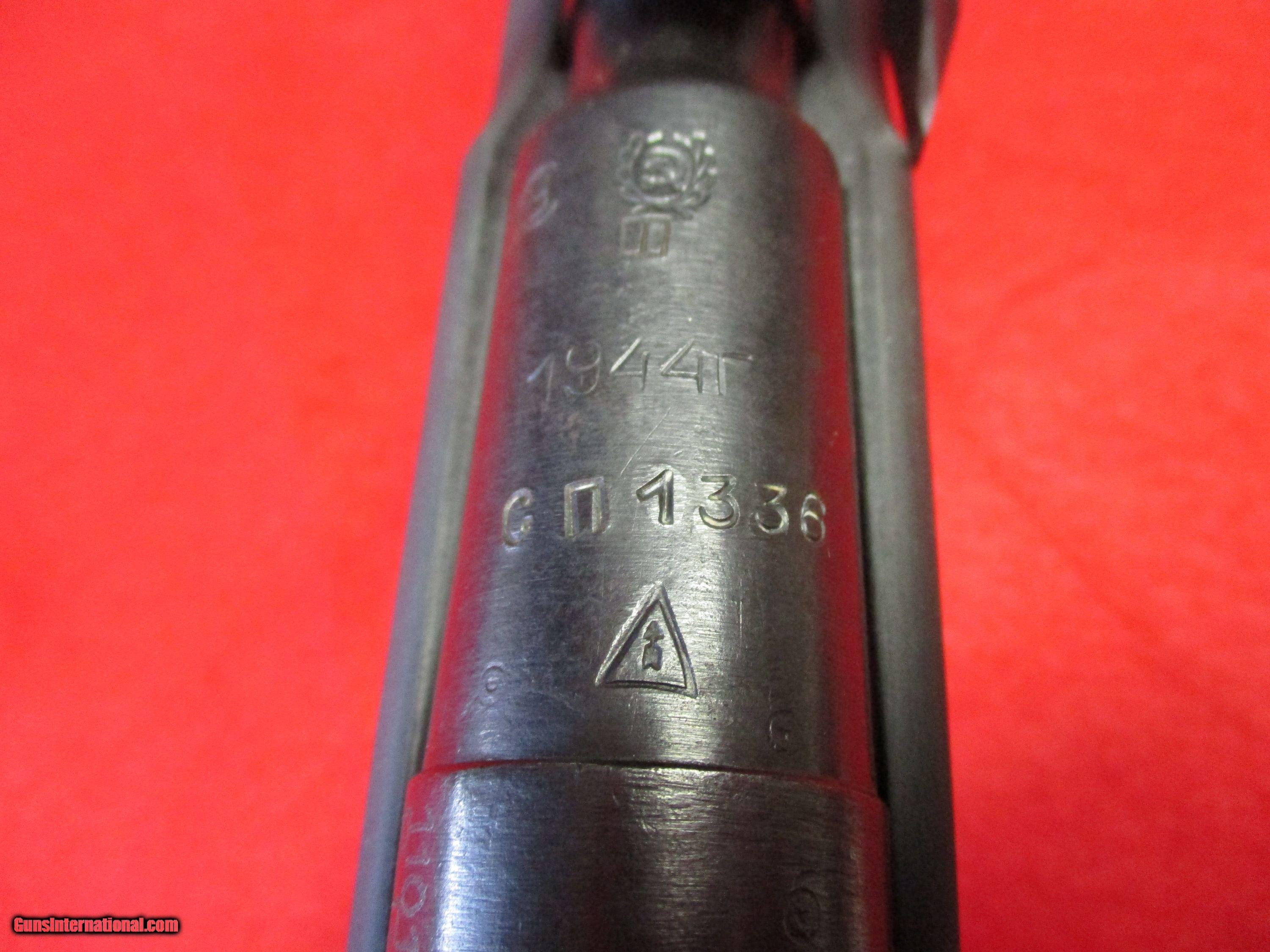 Description: The Mosin-Nagant is one of the best and simplest bolt action rifles ever built. It is also the most-produced bolt action ever made with production running at over 37 million rifles! It faithfully served the Russian people for over 120 years and is still in use all over the world, thanks to its simplicity of design, operation, and use of the excellent 7.62x54R cartridge. The original rifle was designed to be stupid-simple to operate as most Russian soldiers then were illiterate conscripts. It was produced in both rifle and carbine lengths, the latter for use by the cavalry, engineers, and artillerymen. The M1944 was a development of the earlier M1938 Carbine. The difference was the addition of a folding bayonet. The M1944 here has been placed in one of Archangel’s tactical stocks. It uses a 10-round detachable magazine. There is a small compartment on the bottom of the grip as shown in the pictures. The rifle barrel has some minor pitting most likely acquired during its original service with the Soviet Army. The bore is in good shape for its age and the quality of ammunition used during the war. The stock is adjustable for length of pull and height. The iron sight is adjustable for elevation from 100m out to 1000m. If you are looking for a short, reliable bolt action rifle chambered for an inexpensive round, the M1944 would be a fine choice. SOLD Manufacturer: Izhevsk Factory in Soviet Union Model: M1944 Carbine Serial Number: SP1336 (prefix translated Cyrillic to English) Caliber Info: 7.62x54mmR Condition: Used - Good Bore Condition: Good Barrels: 20.2 inches (514mm) Action: Bolt Action Stock: Archangel Stock Butt Pad: Rubber LOP: Variable Finish: Blued |