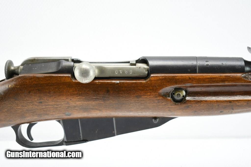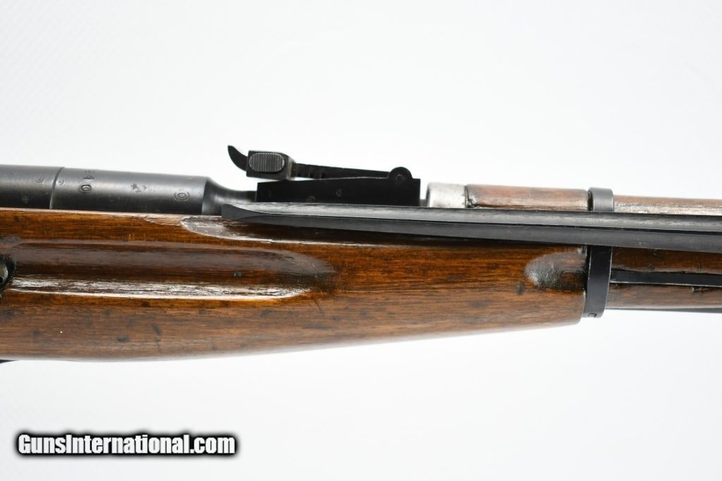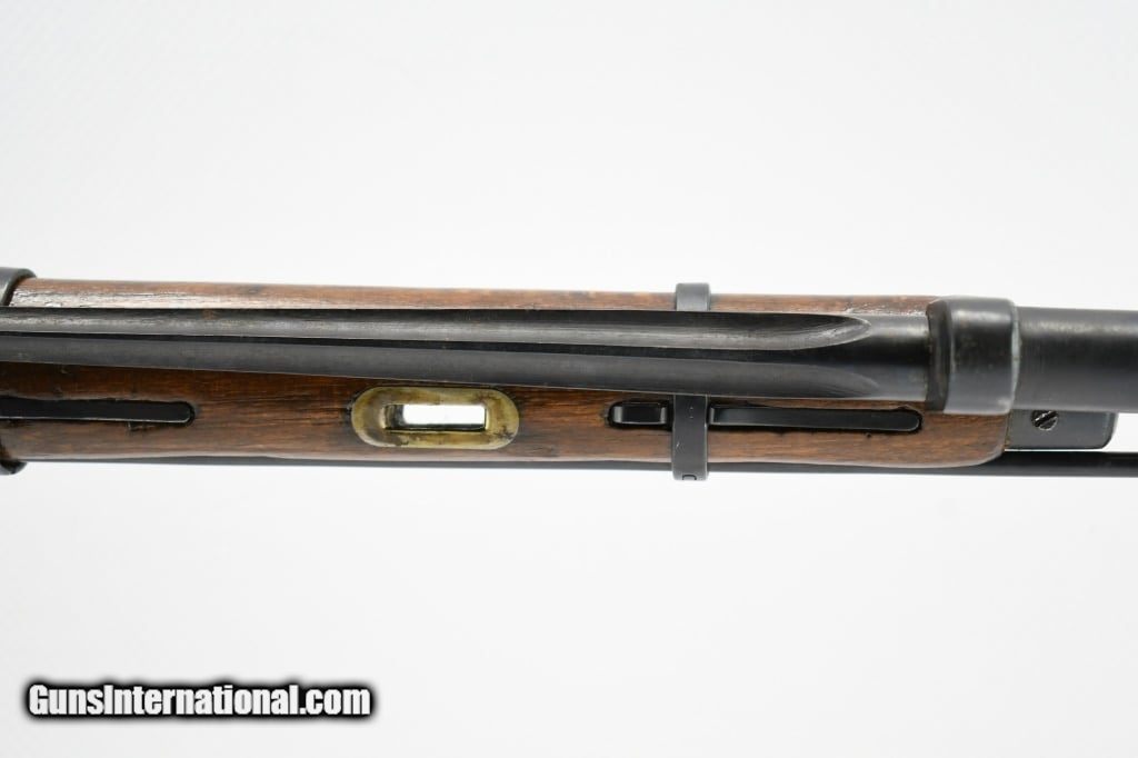 Description: Guns Listing ID: 395362 The Mosin–Nagant is a five-shot, bolt-action, internal magazine–fed Russian military rifle introduced in 1891 and made in several variants throughout the years. The Mosin–Nagant Model 1944 Carbine was introduced into service in late 1944 (with 50,000 service-test examples produced in 1943) and remained in production until 1948. They were produced from 1943 to 1948 at the Izhevsk arsenal and only 1944 at Tula. It features a permanently affixed, side-folding cruciform-spike bayonet. A groove for the folded bayonet is inlet into the right side of the stock. From February 1944, this type of carbine was issued to Red Army infantry troops as a replacement for the standard rifle. This numbers matching M44 Carbine was made at the Izhevsk Factory in 1945 and features a 20.5" barrel, smooth one-piece walnut stock with grooved forearm, folding spike bayonet, adjustable flip-up v-notch rear sight, front post dome sight. This gun is in good condition with some wear, has a sharp/ clean bore and is in perfect working order. SOLD Curio/Relic: Yes Manufacturer: MOSIN NAGANT Model: M44 Carbine Caliber Info: 7.62 X 54R Condition: Used - Non-Certified Barrels: 20.5 BARREL Finish: WOOD, BLUED STEEL |