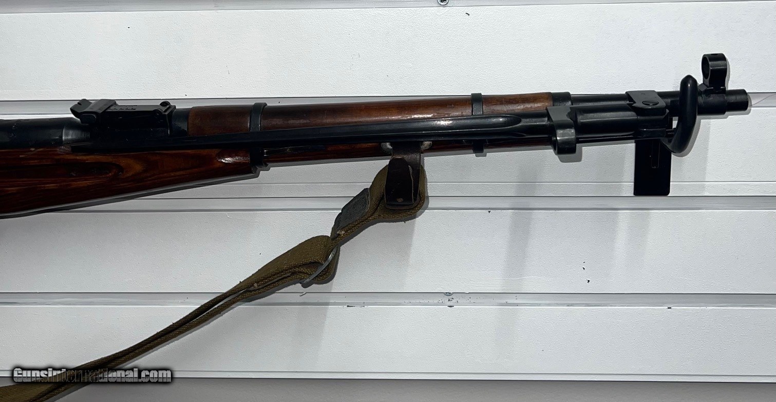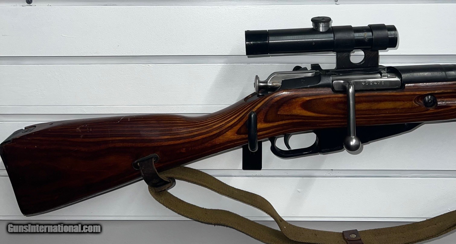 Description: Guns Listing ID: 1021411 Firearm: Russian M44 Mosin Greek Sniper Caliber: 7.62 x 54R Capacity: 5 + 1 Rounds Barrel: 20\" Details: Does not ship with the original carrying case or box. Comes with Russian P.U Scope and Bayonette mounted. Please see pictures for condition. SOLD Manufacturer: MOSIN-NAGANT Model: M44 RUSSIAN Caliber Info: 7.62X54MMR Condition: Used - Non-Certified Barrels: 20 BARREL Finish: BLACK /W WOOD STOCK |
