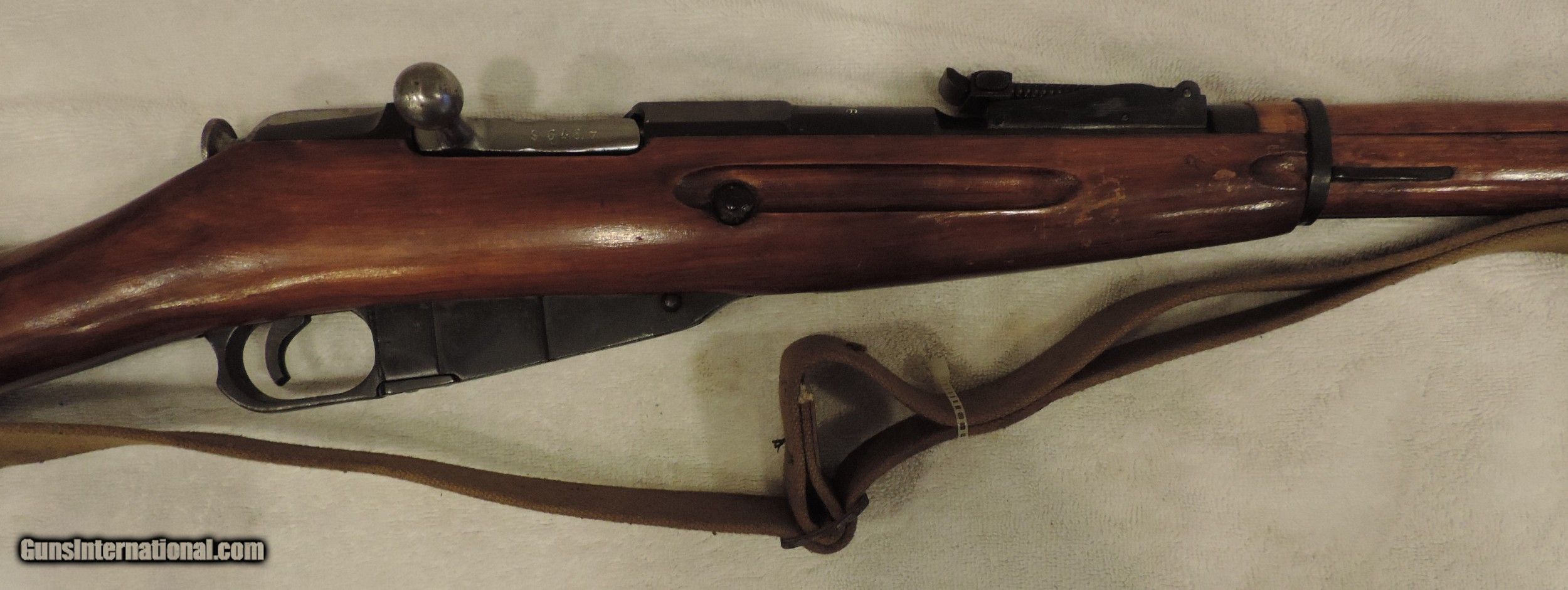 Description: Mosin Nagant Russian, Mdl. 91/30, Cal. 7.62x54r. An absolute war machine. A beautiful example of a pre-war russian rifle with many of the accessories. It looks like it came right out of the factory after a refurbishment and never had a shot go through it. It retains many of its finish with very slight amounts of wear near the crown. There are no rust marks, pin pricks or wear any abvious on the rifles. The rifle is all matching with the magazine plate being force matched but has the correct serial number. The wood is in fantastic shape and maintains its popular finish after all these years. The rifle reads the year 1932 and has the much more desirable "hex" reciever. The serial number reads 49796 with the factory mark of Izhevsk on it with the standard hammer and siclkes encasted in a crest on the reciever. The bolt is smooth and the rifle operated smoothly. The bore is almost as if a shot have never gone through it and is razor sharp and would make a fantastic mantle piece or shooter. Also included post war accessories. At a no regrets price of... $400 Shipped. To purchase this firearm or if you want to request more information contact us at: Email ckgunsymail Phone 201-512-0002 Cell 201-575-6838 FAX 201-215-4759 We accept most major credit cards. Prices shown are Discounted 3% for Cash or Check. The buyer must be familiar with all the laws governing the purchase and the ownership of firearms in their own city and state. The Yankee Armorer, Inc is not responsible for any failure to comply with or observe these laws. The Yankee Armorer, Inc will only ship after full payment and receipt of all required documents. Shipping: Add $25.00 for handguns, $35.00 for long guns. New Jersey buyers are subject to a 7% sales tax. The Yankee Armorer, Inc offers a 3 day inspection period with full refund upon return of intact firearm and in the original condition. The Yankee Armorer, Inc offers a no interest lay away program - 25% down; 25% in 30 days; 25% in 60 days; and full payment in 90 days. Any violation of this policy is subject to restocking and forfeiture of all payments. Any variation from this policy must be agreed to in advance. Unshipped Cancelled sales are subject to a 20% restocking fee. Be advised that all firearms sold by The Yankee Armorer, Inc. or the Gun Exchange, LLC (SELLER) are sold as collector’s items. They have not been fired or tested for safety and must be examined by a license gunsmith prior to use. By purchasing any item from the (SELLER), you are agreeing to hold the (SELLER) free from any damages or lawsuits of any nature. Any item left for transfer or storage will be charged to $25.00 per month, per item from the day of its receipt. Any variation from this policy must be agreed to in advance. Store hours 10:00 am to 5:00 pm Tuesday -Saturday. It's always best to call for appointment. Store 201-512-0002, cell 201-575-6838. SOLD Curio/Relic: Yes |