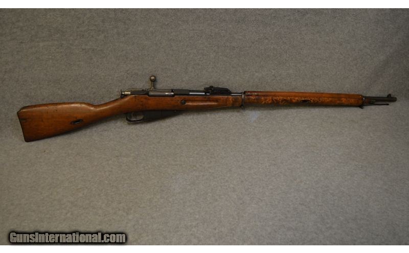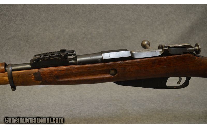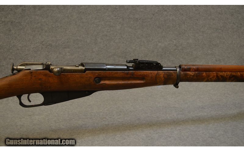 Description: US made M1891 rifle, built by New England Westinghouse under contract for the Russian military 7.62x54R, 5 round fixed magazine. This rifle has a SA Finland Army capture mark which adds to its history. Originally ordered by Imperial Russia in 1915 and delivered to Russia just before the Revolution of 1917. Served in WWI with Russian Imperial Army and later served in WWII on a Finland Front where it got captured and reissued by Finland Army. This is an interesting rifle with lots of history and over 100 years old. 7.62x54R SOLD Metal Condition: Fair Condition Wood Condition: Fair Condition Barrels: Approximately 31 1/2 inches Weight: 9 lb Sights: Front: Dovetail set post atop small base. The rear sight is a "V" notched blade assembly that acts as an escalator when in the down position. It is a "V" notched sliding sight ladder when flipped up. The sight ladder is marked from &qu Item Location: Huntsville, AL |