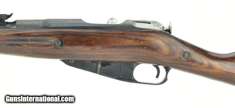 Description: Russian 91/30 7362x54R caliber rifle. Nagant rifle made 1943. Bore is excellent. Serial numbers are matching. Wood has an arsenal repair at toe. Very good overall.