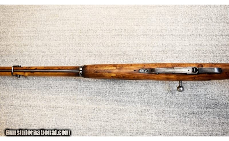 Description: This is a pre-owned Remington manufactured Mosin-Nagant model 1891 in 7.62x54 rimmed 7.62X54R SOLD Chambers: 7.62x54 Rimmed in a five round box magazine Metal Condition: Approximately 55% to 60% of the blue remains with considerable handling wear Wood Condition: Good overall condition with considerable handling wear Bore Condition: Slightly dark with crisp lands 1" counter bore Barrels: 31.5" muzzle counterbored 1"+- Stock Dimensions: 13 1/4" LOP Fore End: Smooth hardwood Butt Pad: Steel butt plate Weight: 9 Lbs. 8 Oz. Sights: "Blade front, folding ladder rear Item Location: Grand Junction, CO |