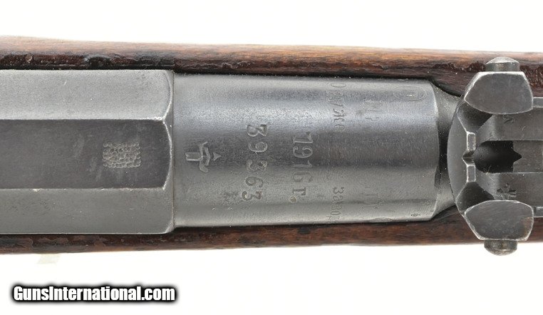 Russian 91 7.62x54R caliber rifle. WWI Imperial Russian Nagant rifle. Bore has shallow rifling and is dark in the grooves. Receiver is dated 1916. Good condition with sling.