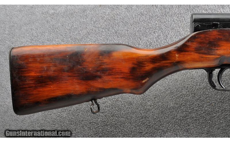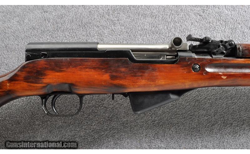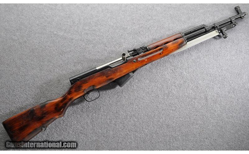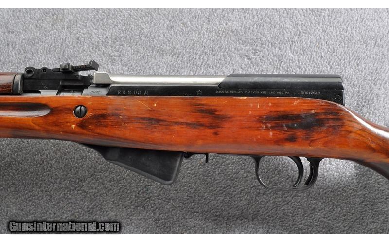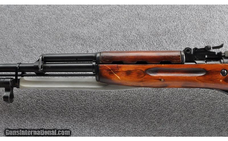 Description: The SKS Russian is a self loading carbine utilizing the Simonov gas system. Designed in 1943, it is a very reliable military weapon with folding bayonet and 10 round fixed magazine. 7.62X39mm SOLD Chambers: 7.62X39mm Russian Metal Condition: "Very good, appears in near unissued condition Wood Condition: Shows a few minor handling marks Bore Condition: Bright & sharp Barrels: 20 Stock Dimensions: 12 1/2" LOP Fore End: Finger groove with upper handguard & fitted with an integral blade bayonet. Butt Pad: Metal with trap Weight: 8 Lbs. 4 Oz. Sights: "Hooded front post adjustable for windage & elevation, Tangent rear leaf Item Location: Grand Junction, CO |