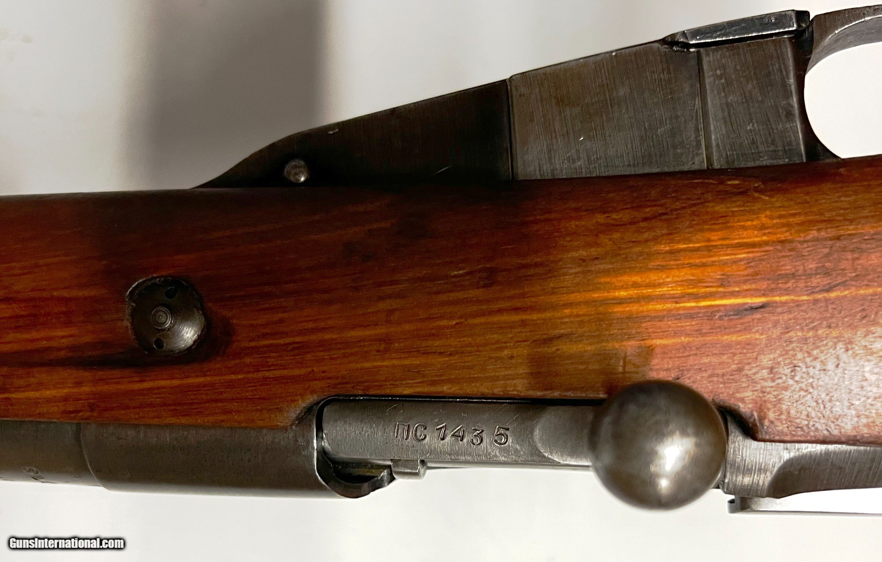 Curio/Relic: Yes Rifle Caliber: 7.62x54mmR Manufacturer: Russian / Soviet (Mosin-Nagant pattern) Model: Carbine (Mosin-Nagant family) Serial Number: KC2018 Barrel Length: 20 Condition: Good — field-used with service marks Metal Condition: good Wood Condition: good Bore Condition: good Action: Bolt action Item Location: NJ Price: $595.00 Contact Seller |