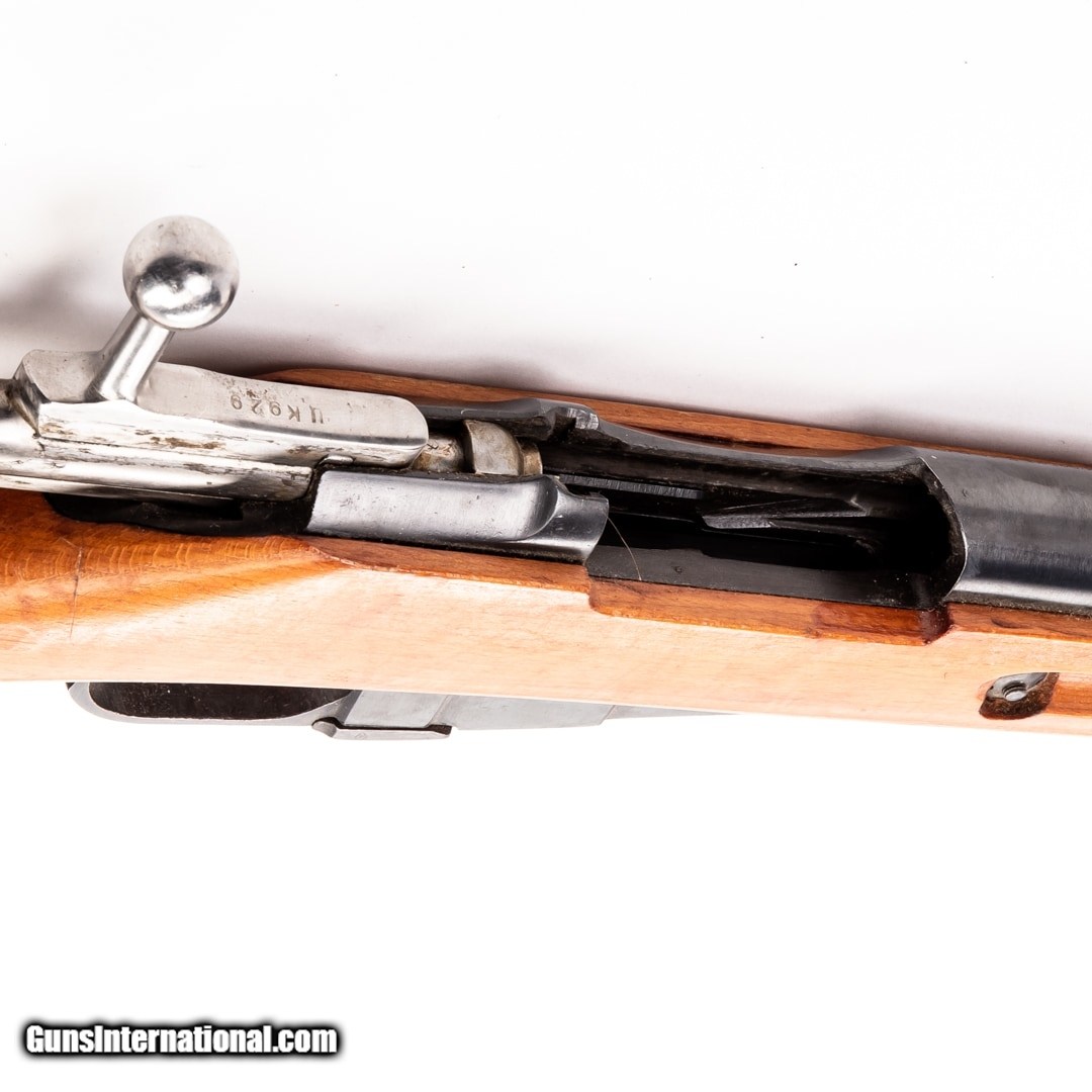 Description: Guns Listing ID: 394279 Designed off the full length Mosin Nagant, the M44 Carbine was a handier rifle designed and used by the Soviets during World War II. They're very solid rifles with a built-up reputation for reliability and lethality. This rifle is has its bayonet but is mising the bayonet pin that attaches it to the barrel. The receiver is stamped with a hammer and sickle. This rifle includes a cleaning rod, a sling, and ammo pouches. This rifle is numbers matching. This rifle is dated 1946. SOLD Manufacturer: RUSSIAN STATE FACTORIES Model: M44 Caliber Info: 7.62X54MMR Condition: Used - Certified Barrels: 21 BARREL Finish: BLACK |