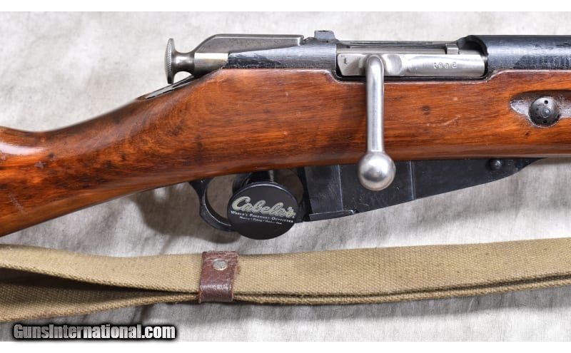 Description: Very nice Mosin-Nagant with good metal and wood. Shows few defects and it comes with appropriate scope. 7.62x54R SOLD Curio/Relic: Yes Chambers: 5 Metal Condition: Very good. Wood Condition: Very good. Bore Condition: Shiny and bright with good rifling. Barrels: 28-inch Triggers: Factory trigger. Stock Dimensions: 13_1/2 inch LOP. Fore End: Full-length hardwood stock with heat shield. Butt Pad: Steel plate. Weight: 9 lb - 9 oz Sights: Hooded post and notch military sights. Provided with a 4X24 Russian scope. Item Location: Rogers |