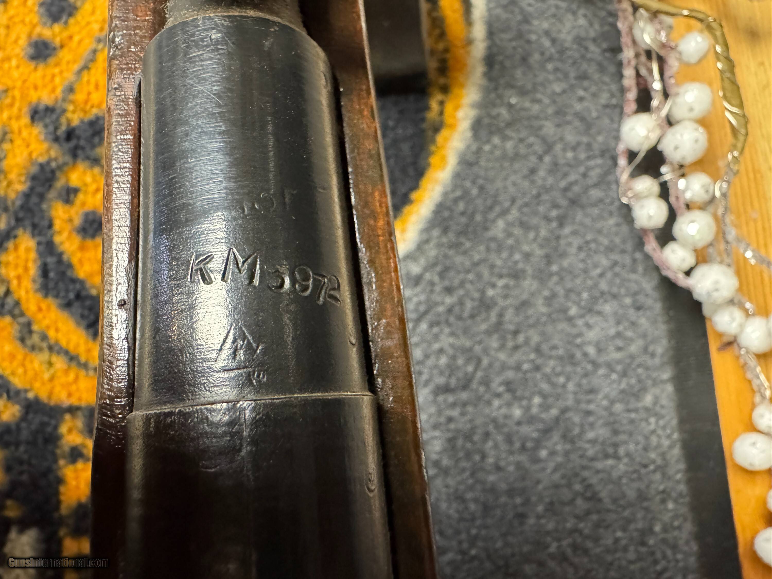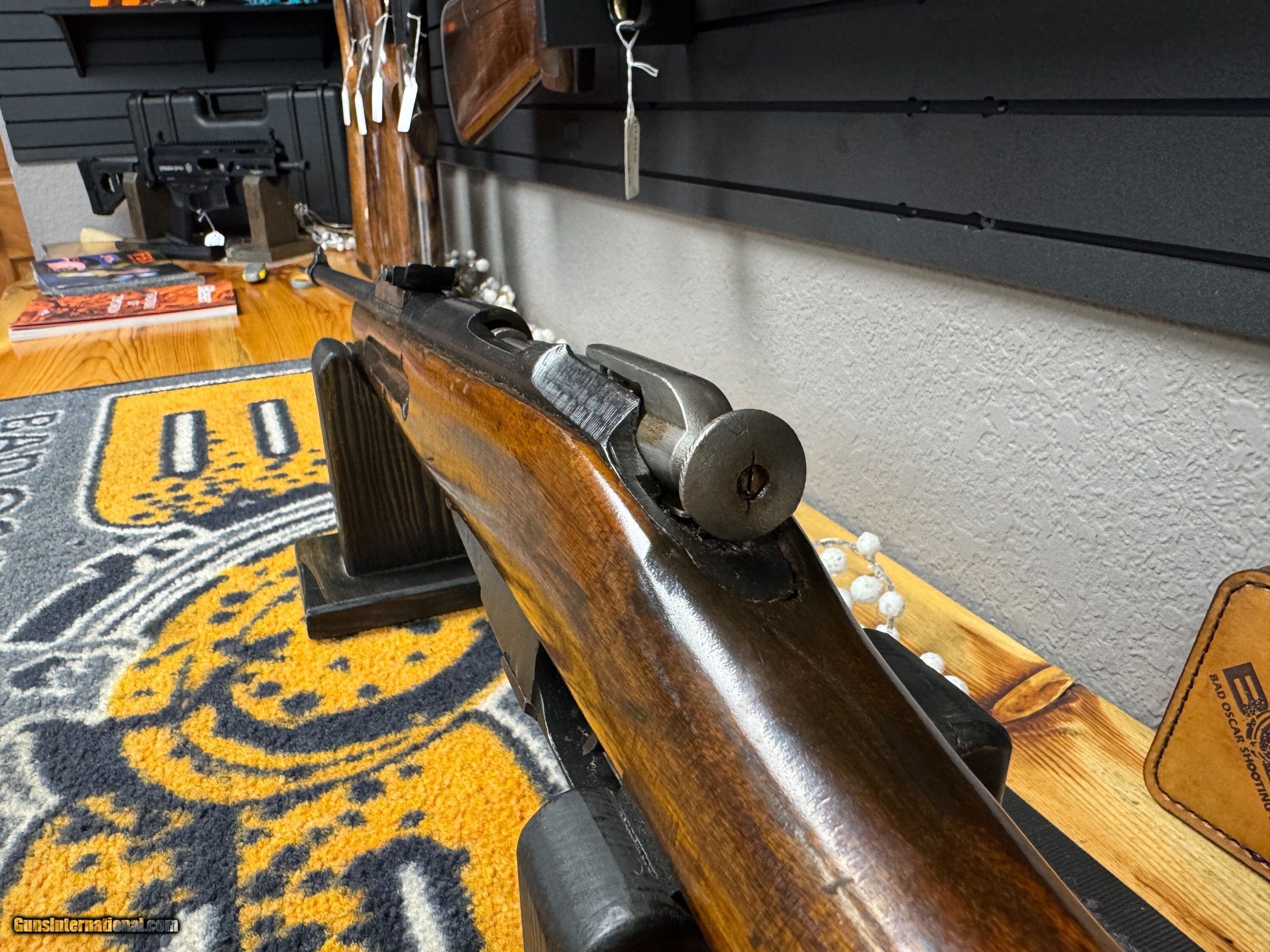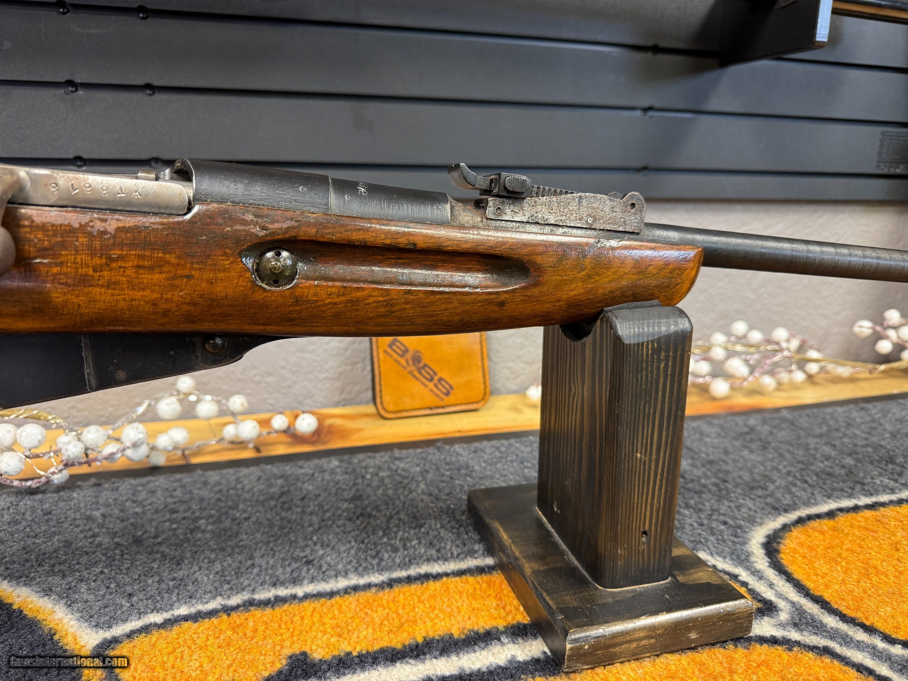 Description: *NOTE* THIS IS A MODIFIED HISTORICAL FIREARM. IT IS THE BUYERS RESPONSIBILITY TO VERIFY WITH A GUNSMITH IF THE FIREARM IS SAFE TO USE IN ITS CURRENT STATE BEFORE FIRING. NOT ELIGIBLE FOR RETURNS. CONSIGNMENT SALE- SPORTERIZED/MODIFIED MODEL 91 MOSIN NAGANT. For sale on consignment is this uniquely modified Mosin Nagant. There have been a couple that I have personally seen in a similar but not exact configuration. With a bunch of different serials and proof marks all over the place I can hardly imagine where all these parts came from, but I'm sure some history buffs will know. While a fully original M91/30 Mosin would be an amazing find, it's still neat to see modified versions pop up every now and then. To purchase this firearm call us at 715-388-8411 Curio/Relic: Yes Rifle Caliber: 7.62x54mmR Model: Model 91 Mosin Nagant Serial Number: KM5972 Barrel Length: 23 Action: Bolt Stock: Wood Fore End: Finger Grooves Butt Pad: Metal LOP: 13 3/4 Finish: Gloss Sights: Elevation Adjustable and Front Post Item Location: WI Price: $300.00 Contact Seller |