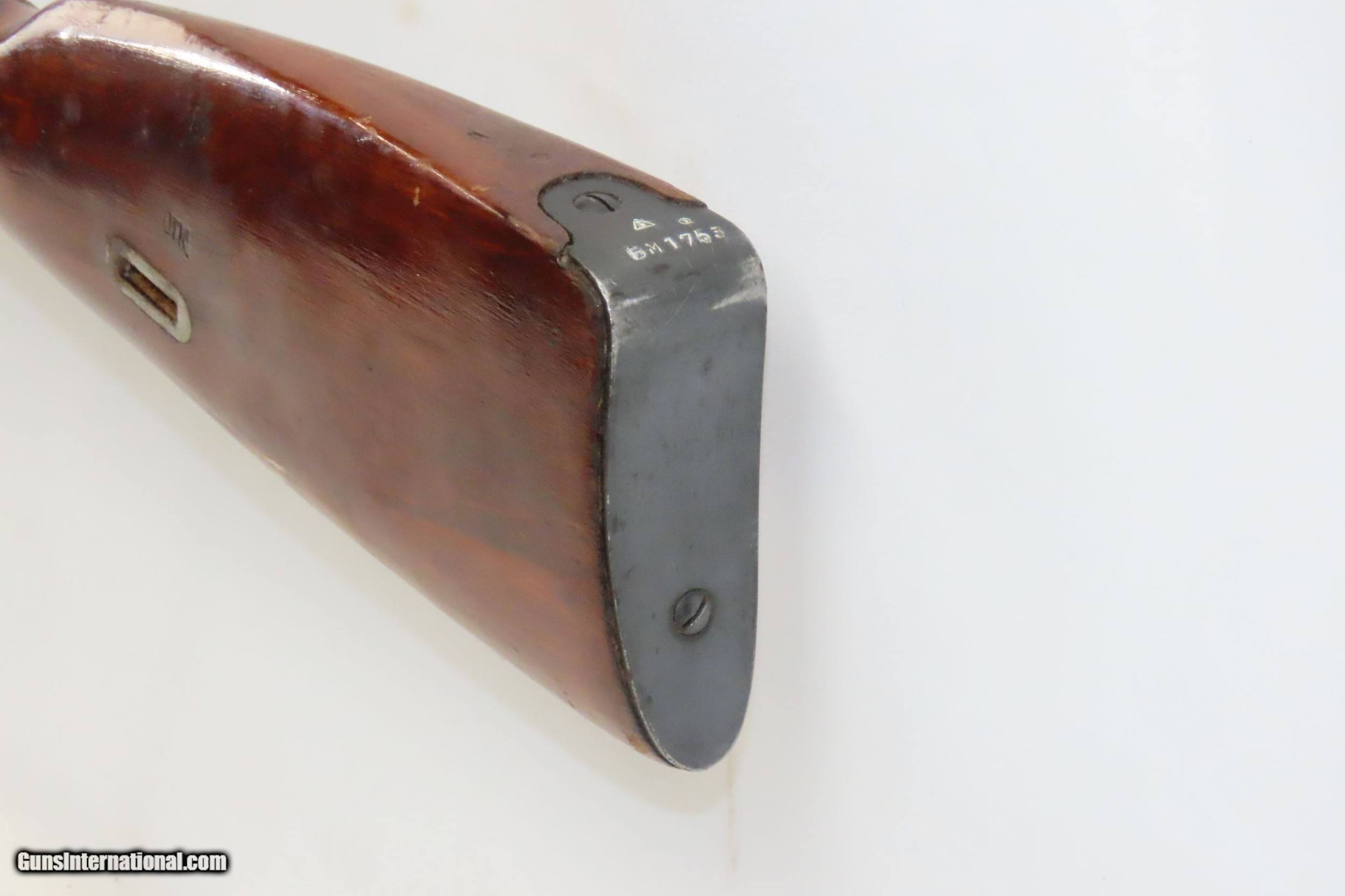 Description: WORLD WAR II Soviet IZHEVSK ARSENAL Mosin-Nagant Model 1944 C&R CARBINE 1943 “SERVICE TEST” Example w/FOLDING SPIKE BAYONET Here we present a C&R Soviet Mosin-Nagant Model 44 Carbine, made in 1946 at the Izhevsk arsenal. The predecessor to this rifle was the Soviet Model 1891 known in the West as the Mosin–Nagant and in Russia as Mosin's rifle was a five-shot, bolt action, internal magazine fed military rifle developed from 1882 to 1891 and used by the armed forces of the Russian Empire, the Soviet Union and various other nations. It is one of the most mass-produced military bolt-action rifles in history with over 37 million units having been made since its inception in 1891, and, in spite of its age, it has been used in various conflicts around the world up to the present day. An increase in urban combat led directly to the development of the Model 44 Mosin-Nagant. In essence, the Model 44 is a Model 38 with a slightly modified forearm and with a permanently mounted cruciform bayonet that folds into the right side of the stock when it is not needed. In terms of handiness, the Model 44 was an improvement on the Model 91/30, particularly for urban warfare, but few Model 44s saw combat on the Eastern Front. It was introduced into service in late 1944 (with 50,000 service-test examples produced in 1943) and remained in production until 1948. This example is one of the 50,000 “Service Test” examples produced in 1943. They were produced from 1943 to 1948 only at the Izhevsk Arsenal. These were in use not only by the Soviet Union, but also its various satellite nations. The overall condition is very good. Armory finish. The numbers match. The action is excellent. The bore is bright with sharp rifling. The muzzle is counter-bored. The stock is solid. This firearm is classified as a Curio & Relic. Barrel is 20 inches. Caliber: 7.62x54 R Overall condition as seen in photos. Very Fast. Very Safe. FREE SHIPPING. Will need to be sent to your local FFL or C&R licensee. This firearm is classified as a Curio & Relic. Guaranteed AUTHENTIC & Includes CERTIFICATE OF AUTHENTICITY. ancestryguns $1200 #226707 SOLD Curio/Relic: Yes |