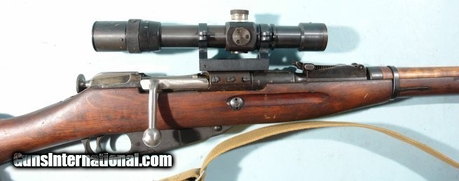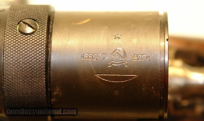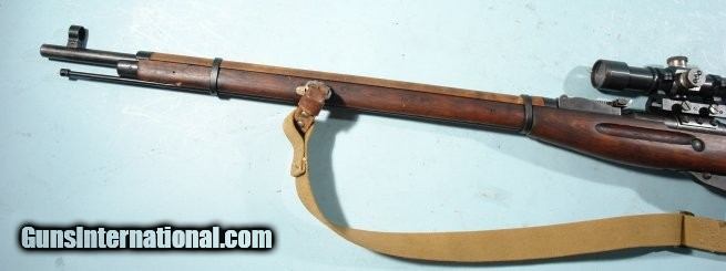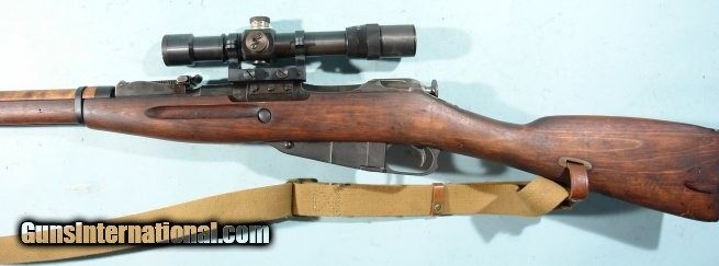 Description: WW2 SOVIET RUSSIAN MOISIN-NAGANT TULA ARSENAL MODEL 91/30 OR 1891/30 SNIPER RIFLE DATED 1937 W/SCOPE DATED 1937. Original rifle with Soviet Star and date stamp “1937” on receiver. Later Russian made reproduction of the original scopes and mounts. Excellent plus with the original blue-black finish on metal and wood with the original finish as well. Near mint bore and perfect working order. Scope optics as new. Correctsling. SOLD Curio/Relic: Yes Rifle Caliber: 7.62x54mmR |