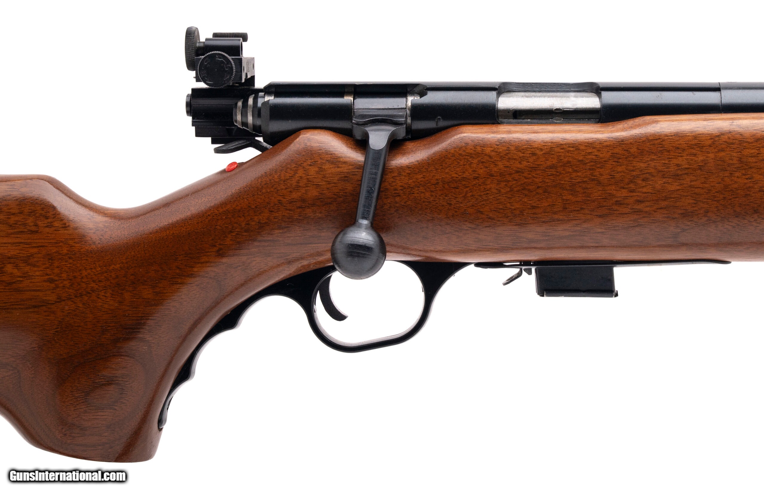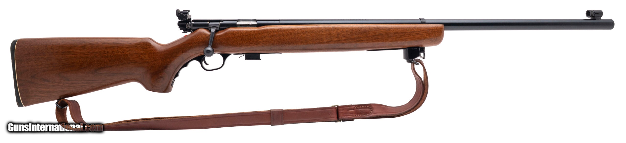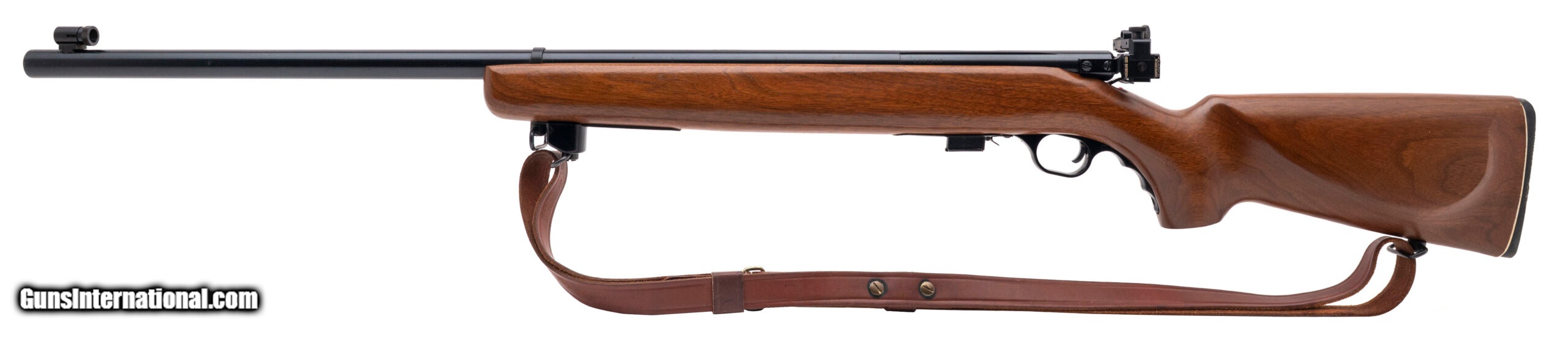 Description: "SN: 1341967. Made circa 1980s, .22LR with a 27"" heavy barrel. Bore is excellent. Bolt action target rifle with peep sights. Has a 13.37"" LOP. Blued finish is in very good condition. Wood stock is near excellent. Comes equipped with a brown leather sling. Very good condition overall. SOLD |