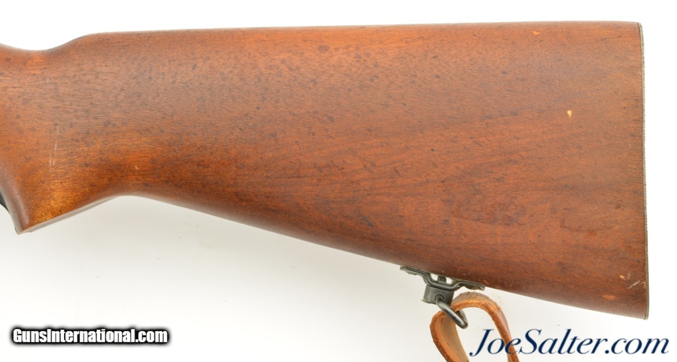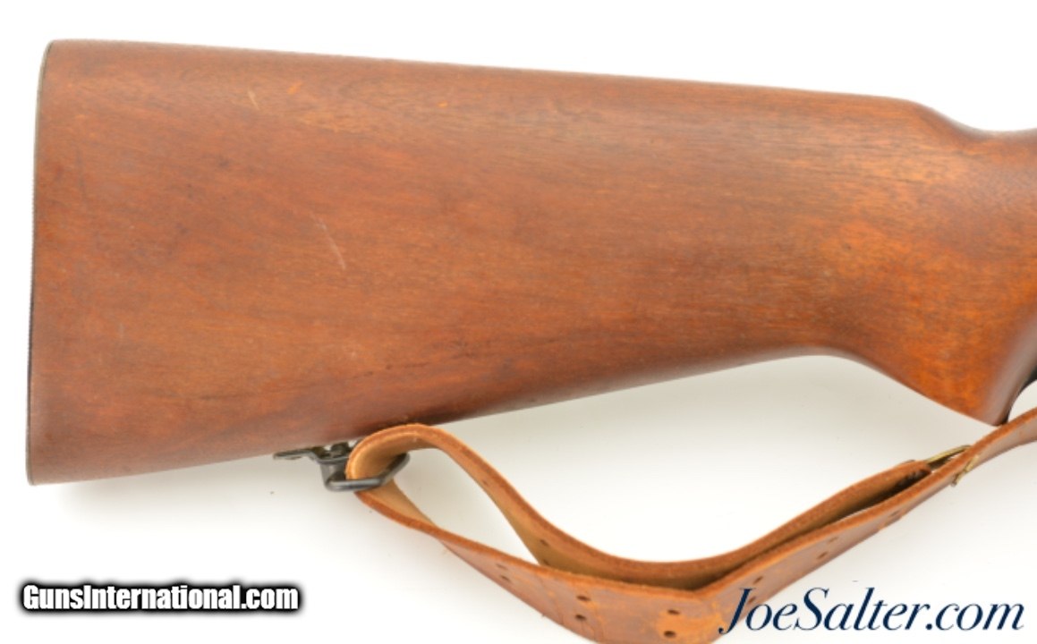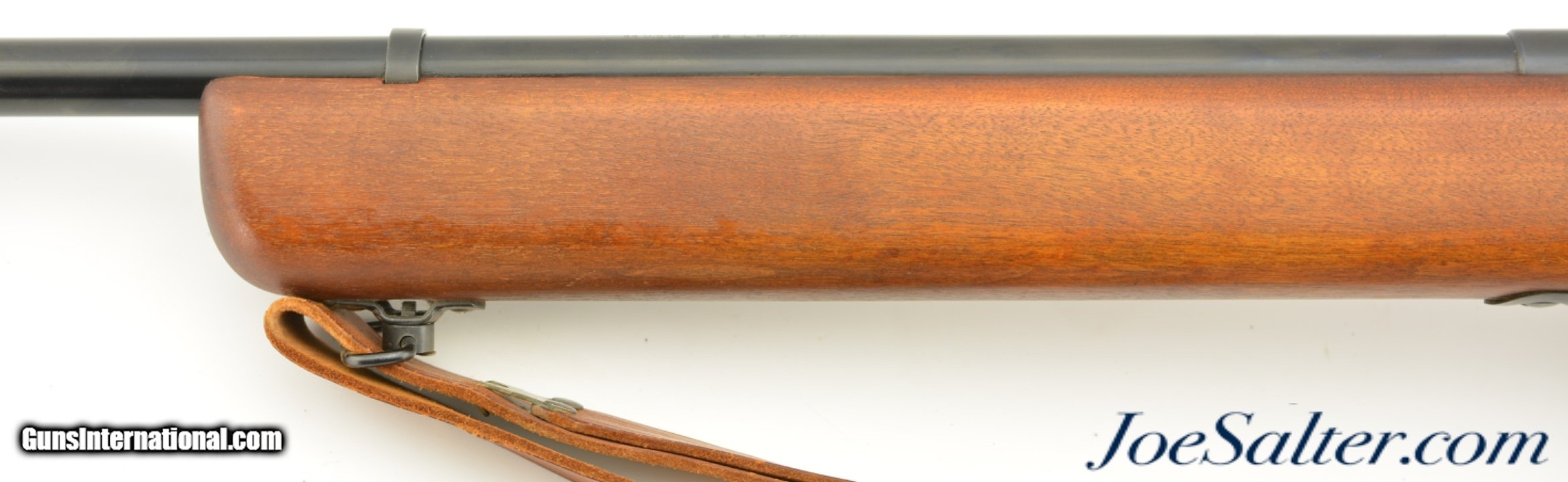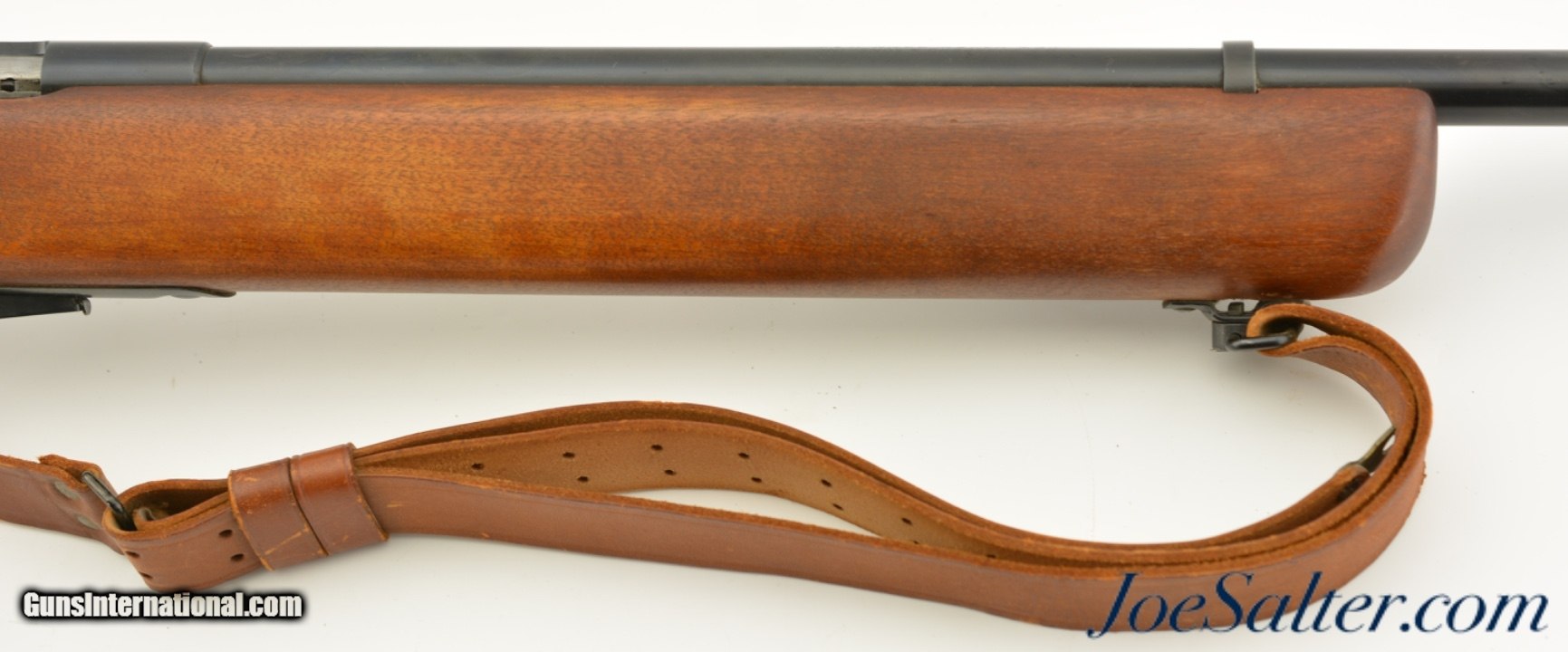 Description: NSN. .22 LR, 26" barrel with an excellent, bright bore. This is a little-used, commercially sold rifle that has retained 98-99% of the original blue on the barrel and receiver. The bolt has a mixture of bright gray and vivid color case-hardening remaining, while the birch stock is in fine-excellent shape with only a few minor handling marks and blemishes scattered about. Additionally, the red and green plastic safety inserts are no longer present. The rifle comes with the original front and rear sights, front sight hood, a single magazine, and brown leather sling. This is an excellent example of a popular training rifle. FFL or C&R SOLD Curio/Relic: Yes |