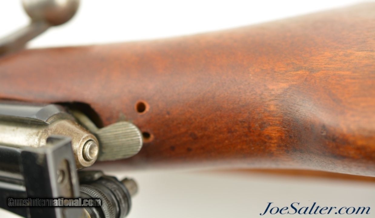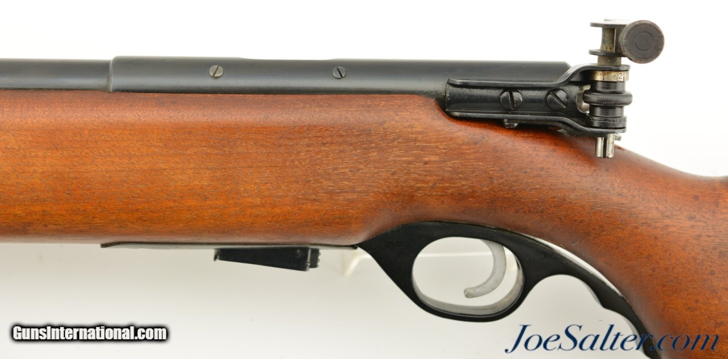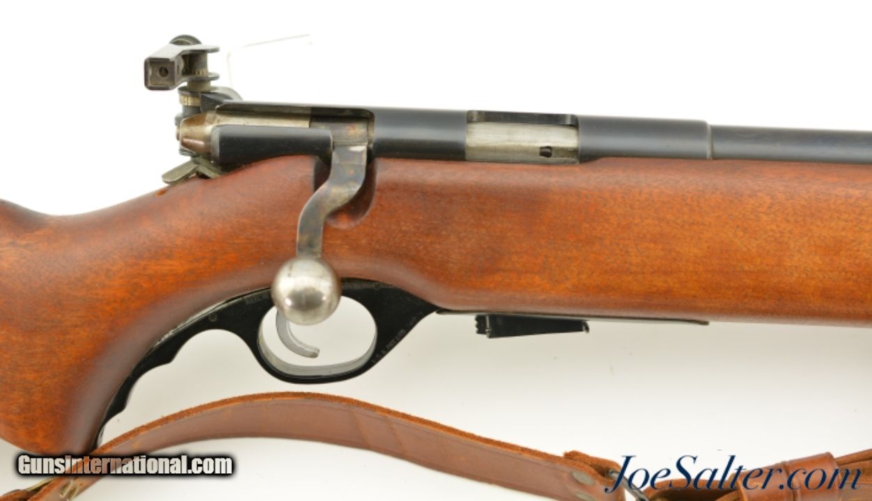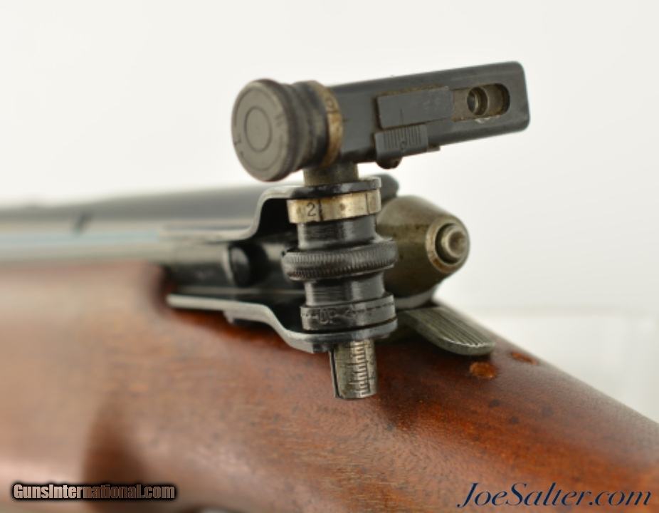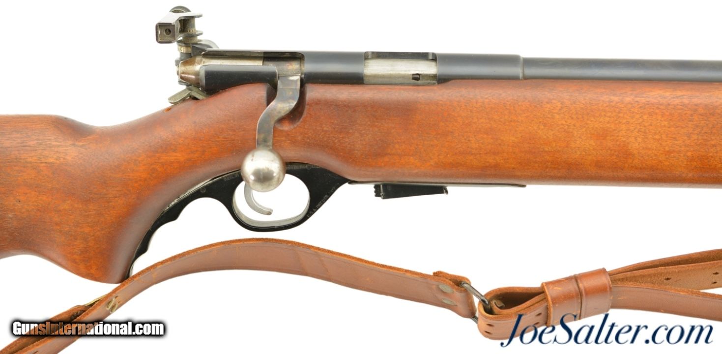 Description: NSN. .22 LR, 26" barrel with an excellent, bright bore. This is a little-used, commercially sold rifle that has retained 98-99% of the original blue on the barrel and receiver. The bolt has a mixture of bright gray and vivid color case-hardening remaining, while the birch stock is in fine-excellent shape with only a few minor handling marks and blemishes scattered about. Additionally, the red and green plastic safety inserts are no longer present. The rifle comes with the original front and rear sights, front sight hood, a single magazine, and brown leather sling. This is an excellent example of a popular training rifle. FFL or C&R SOLD Curio/Relic: Yes |