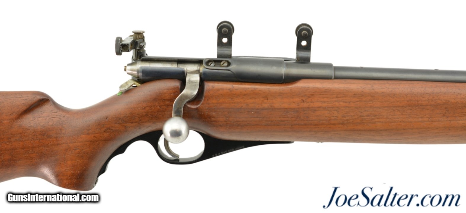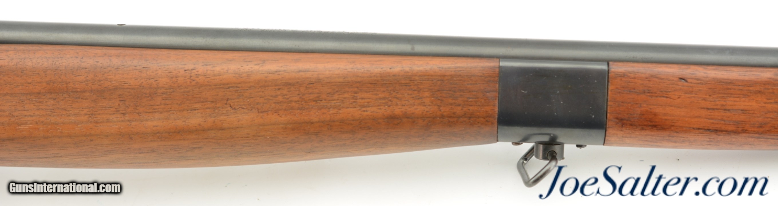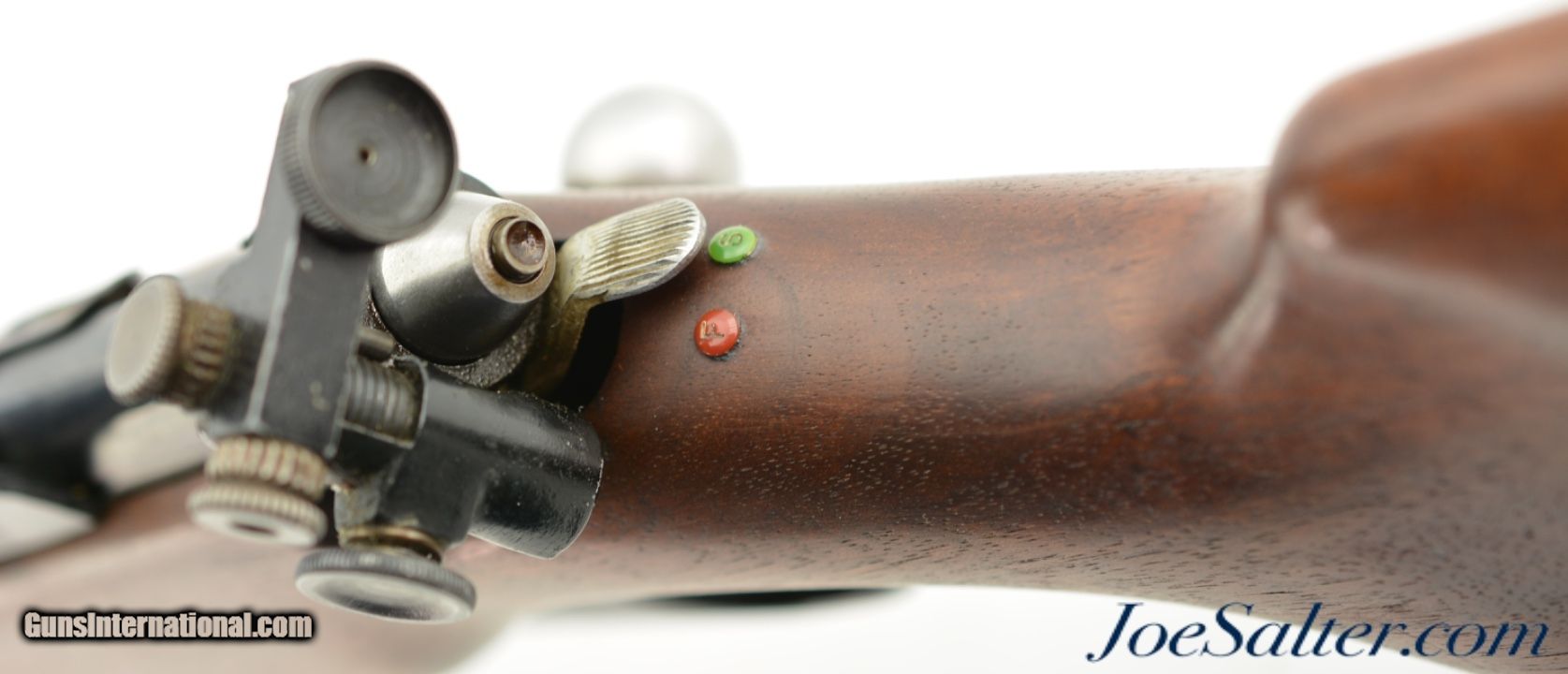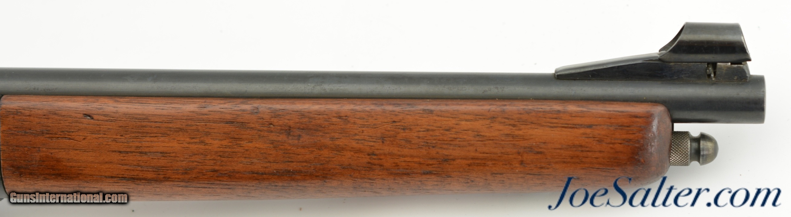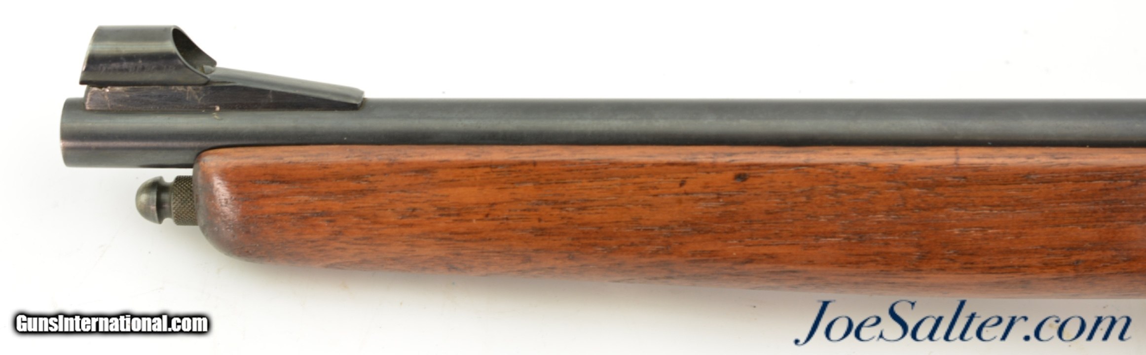 Description: Serial #NSN, .22 S, L, LR, 23 inch barrel with a bright, excellent bore. This is the Mossberg Model 46M bolt action rifle featuring a Mannlicher-style walnut stock and tube fed magazine manufactured from 1940-1945. In excellent condition the blued metal retains virtually all, 97-98% of the original finish with some very minor use marks and several tiny freckles. The walnut stock rates excellent with some scattered use marks. It is equipped with the original No.4 receiver peep sight and hooded front sight in addition the barrel is drilled and tapped and there is a receiver mounted frame for yet another sight option. An excellent example of the Wartime produced Mossberg target rifle. FFL or C&R SOLD Curio/Relic: Yes |