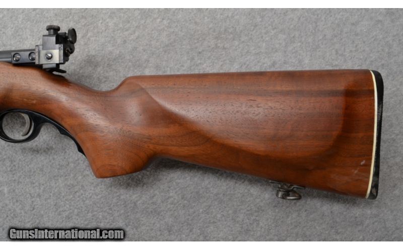 Description: Mossberg 141 LSA .22 Long Rifle, 26 inch target barrel with factory sights. The bore is bright with strong rifling. Action and barrel retains nearly all of its blue with some slight wear and very light patina on the barrel. Walnut stock shows some light handling marks. SOLD Caliber Info: .22 LR Metal Condition: Action shows very minor wear marks though none are through the finish. Barrel shows some very light patina and has some very light handling marks, but maintains nearly all of its factory blue finish. Wood Condition: Shows some light handling marks near the toe and a few on the right hand side below the factory peep sight. Bore Condition: Bright bore with strong rifling. Barrels: 26 inch round heavy barrel. Triggers: Grooved trigger. Stock: Uncheckered walnut pistol grip stock and fore end with raised cheek piece. Stock Dimensions: 13 1/2 inch LOP Fore End: Uncheckered walnut pistol grip stock and fore end with raised cheek piece. Butt Pad: Factory black plastic butt plate. Weight: 7 lbs. 14 oz. Sights: Factory rear peep sight and front aperture sight. Extras: Comes with one factory magazine. Item Location: Mitchell, SD |