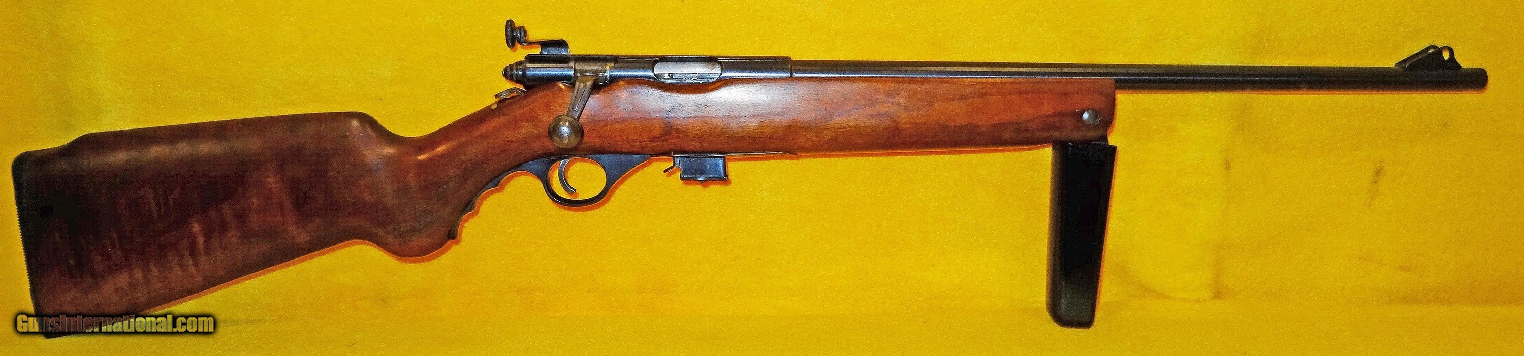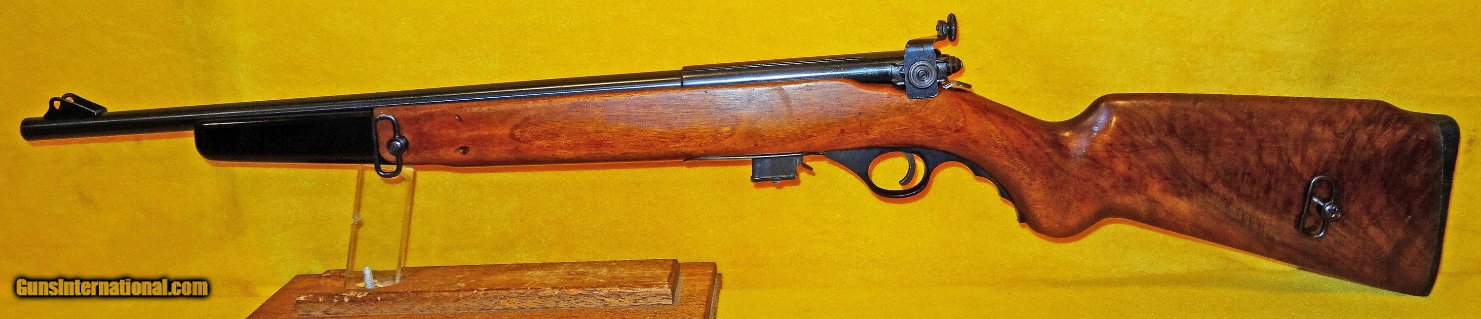 Description: MOSSBERG 142A IN .22 CAL., WITH 18" BARREL. COLOR BLUE. CONDITION 95%+. SERIAL NUMBER NONE. MOSSBERG MODEL 142A, COMES WITH ONE FACTORY MAGAZINE, WOOD VERY GOOD TO EXCELLENT, SWING OVER PEEP SIGHT, BRIGHT SHINY BORE, HINGED HORIZONTAL FORE END, 95%+ OVERALL CONDITION, OUR STOCK # D1018. SOLD |