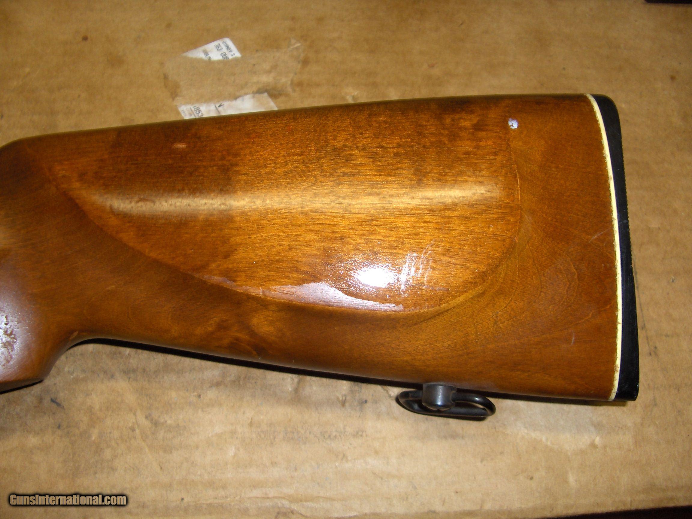 Description: Mossberg 144LSB target 22 LR. Heavy15/16" barrel.Mossberg S 331 rear sight,Lyman 17A front. Gun is like new with a few minor stack dings. Trigger guard is perfect. Metal is perfect. Magazine was missing so I replaced it with an original I had. Sling swivels and hand stop. 8 1/2 lbs. A really nice piece. SOLD |