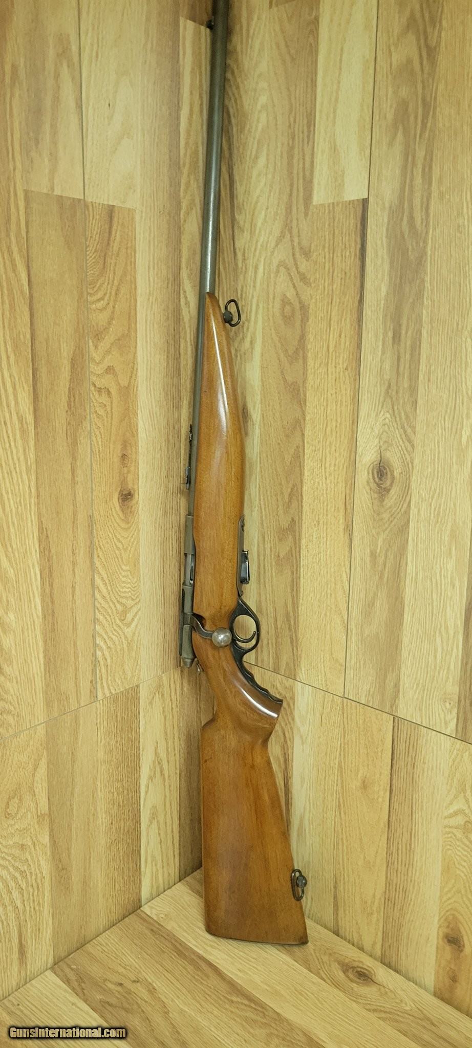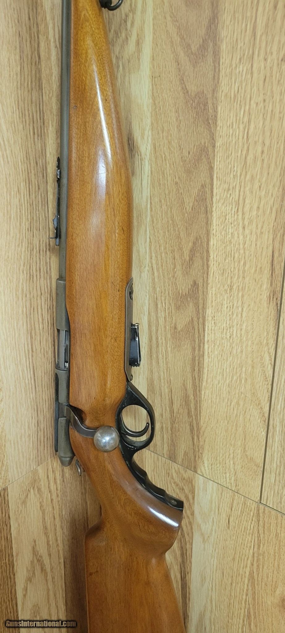 Description: Guns Listing ID: 583645 The Mossberg 42M is a .22 caliber, bolt-action training rifle made in the United States, often marked \"United States Property\" and supplied to Britain during World War II for training purposes. It has a 23-inch barrel, a 7-round magazine, and a compartment in the buttstock for a spare magazine. Key features include its ability to fire .22 Short, Long, and Long Rifle cartridges, and it was equipped with adjustable peep sights for accuracy. No serial number. Pre 1947. MSS Manufacturer: MOSSBERG Model: 42M Caliber Info: .22 LR Condition: Used - Non-Certified Barrels: 23" BARREL Action: BOLT ACTION Finish: 2-tone Price: $220.99 Contact Seller |
