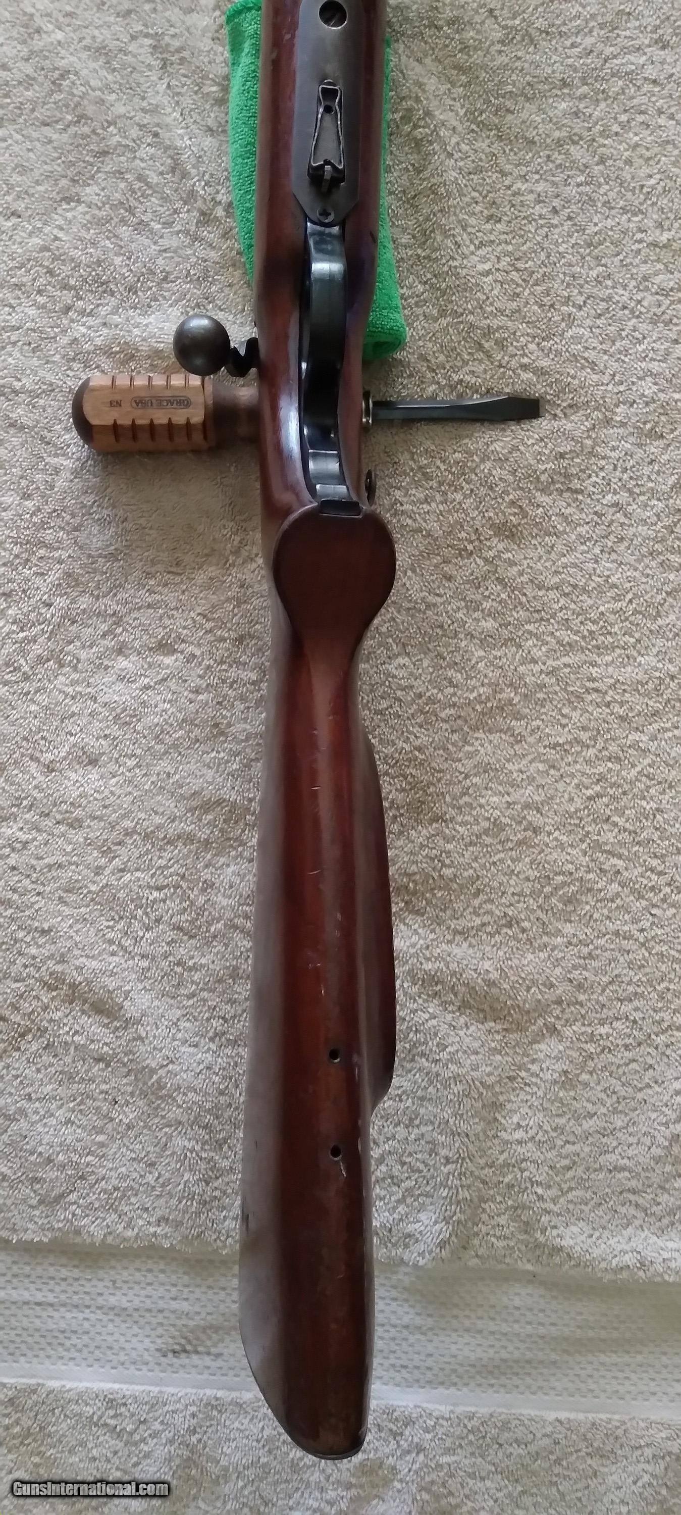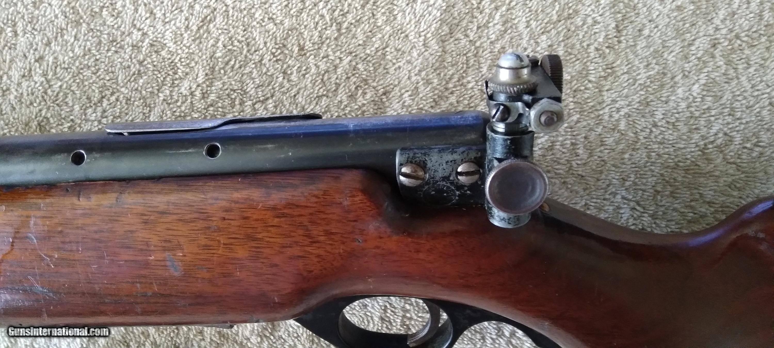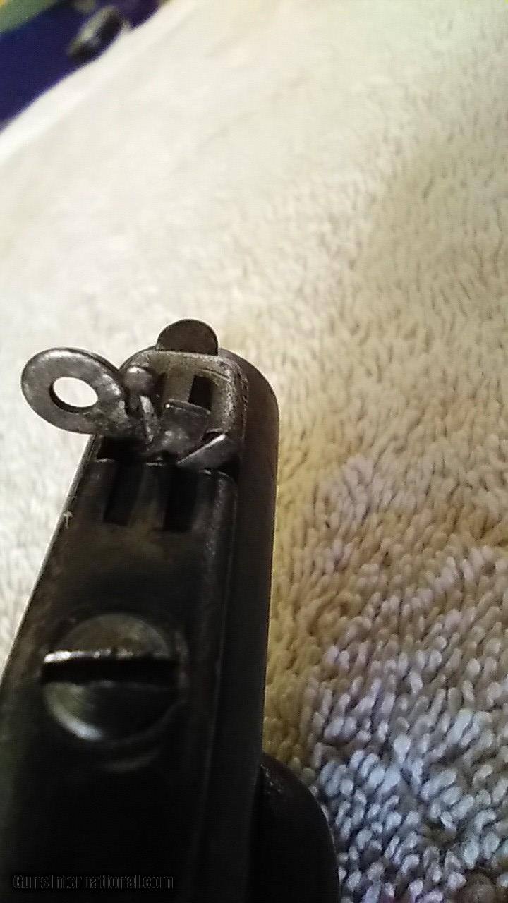 Description: SOLD SOLD SOLD MOSSBERG .22 RIMFIRE CALIBER .22 SHORT - LONG - LONG RIFLE NSN 23in BARREL WALNUT PISTOL GRIP STOCK IN EXCELLENT SHAPE WITH RAISED CHEEK PIECE ORGIONAL FINISH 98%+ WITH TYPICAL HANDELING MARKS SOME SCUFFS DENTS DINGS BLUING IS OK/GOOD WITH SOME THINNING FADING PATINA BORE HAS LITE PITTING WITH FAIR RIFLING BUT WORN FRONT SIGHT FOUR POST ADJUSTABLE SELECTION REAR SIGHT ADJUSTABLE APERTURE PEEP SIGHT SOME BUBBA REPLACMENTS NUTS AND SCREWS BARREL DRILLED AND TAPPED FOR ADJUSTABLE NOTCH MIDDLE SIGHT RECEIVER DRILLED AND TAPPED FOR A SCOPE MOUNT MISSING SLING MOUNTS MAGAZINE STORAGE COMPARTMENT IN THE BUTT PLATE COMES WITH THREE MAGAZINES ONE ORGIONAL SEVEN ROUND MAGAZINE TWO SCHERER SEVEN ROUND MAGAZINES MUST SHIP TO FFL OR C&R FFL SHIPPING $35.00 SOLD SOLD SOLD SOLD Curio/Relic: Yes Rifle Caliber: .22 Long Rifle Manufacturer: MOSSBERGE Model: 42M Serial Number: NSN Barrel Length: 23in Bore: FAIR RIFLING Condition: GOOD Metal Condition: Excellent Wood Condition: Excellent Bore Condition: FAIR WITH LITE PITTING Sights: ADJUSTABLE PEEP Manufacture Date: LATE 1940s EARLY 50s |