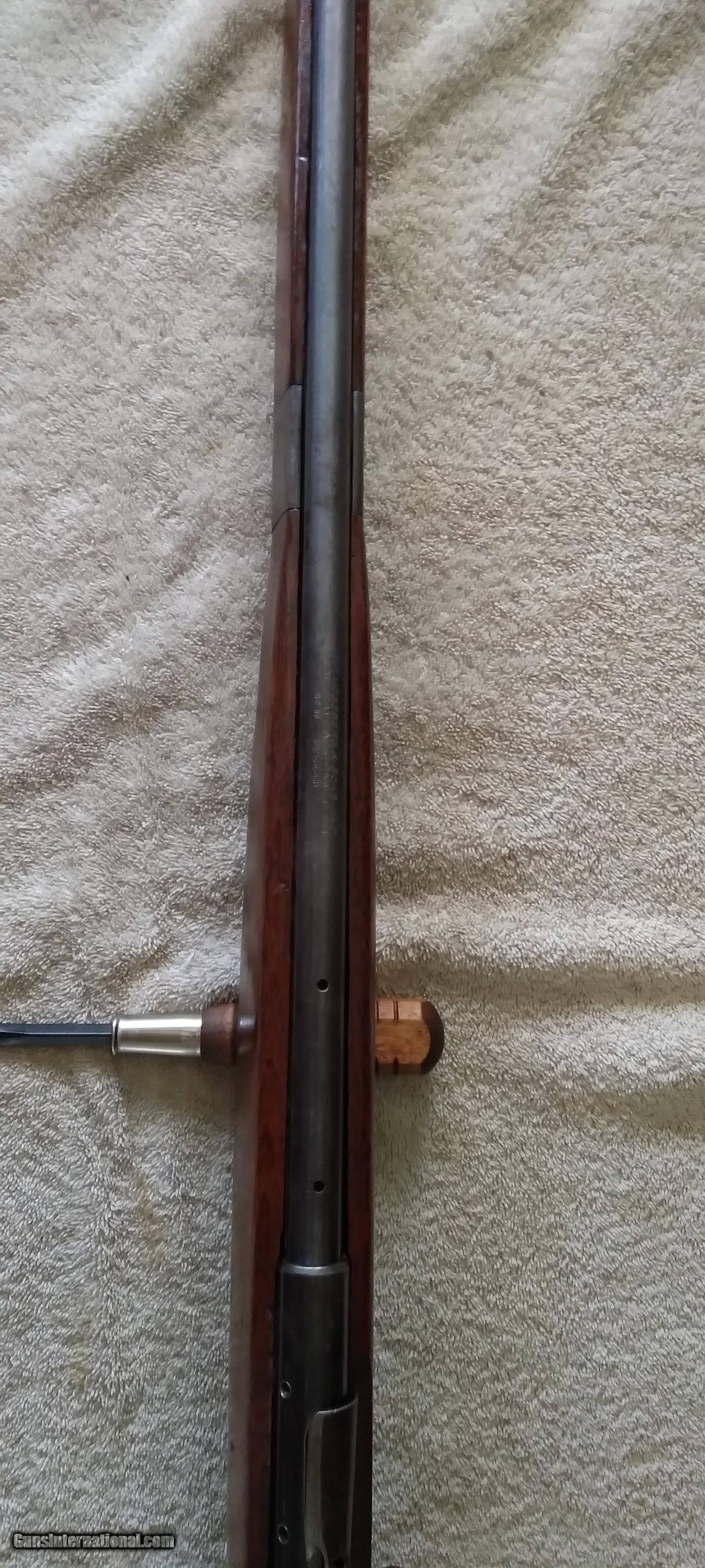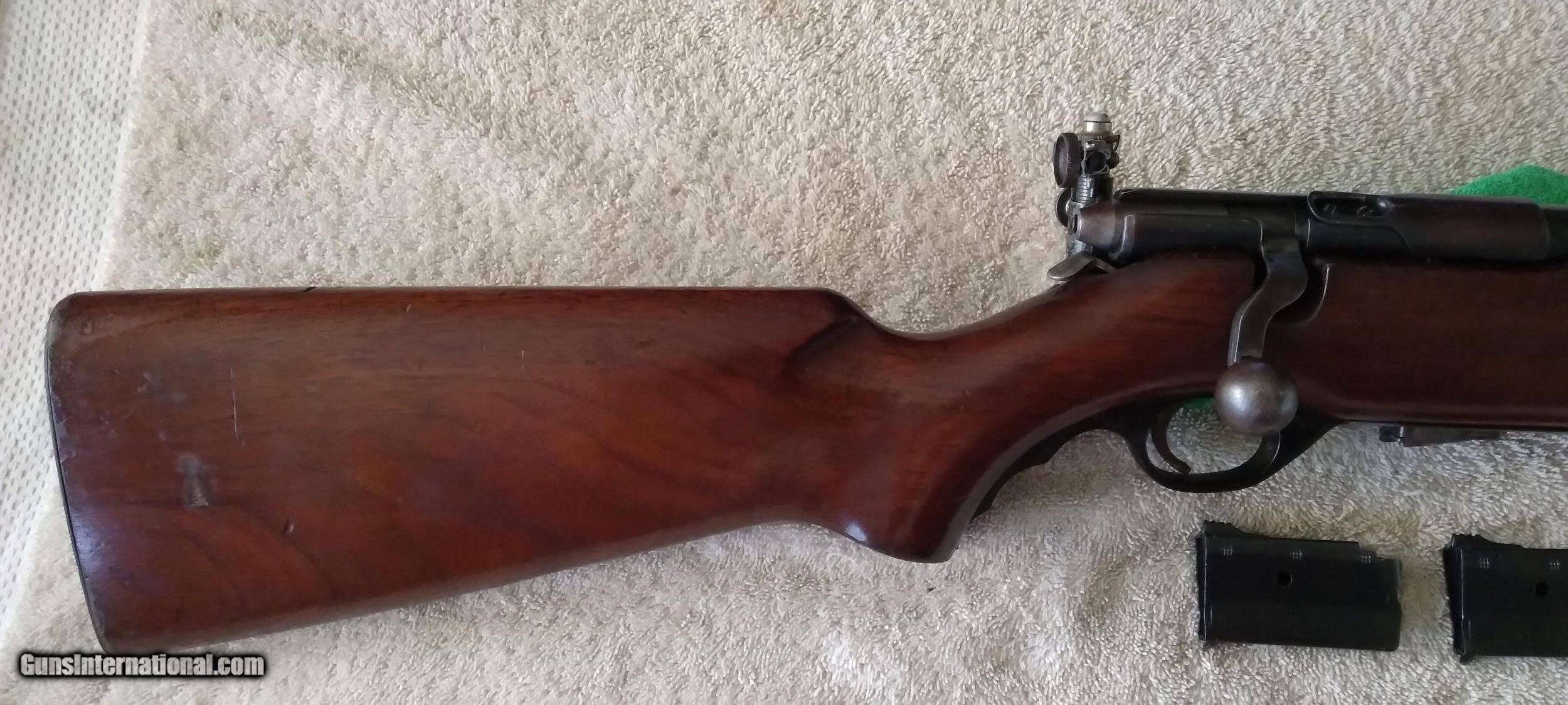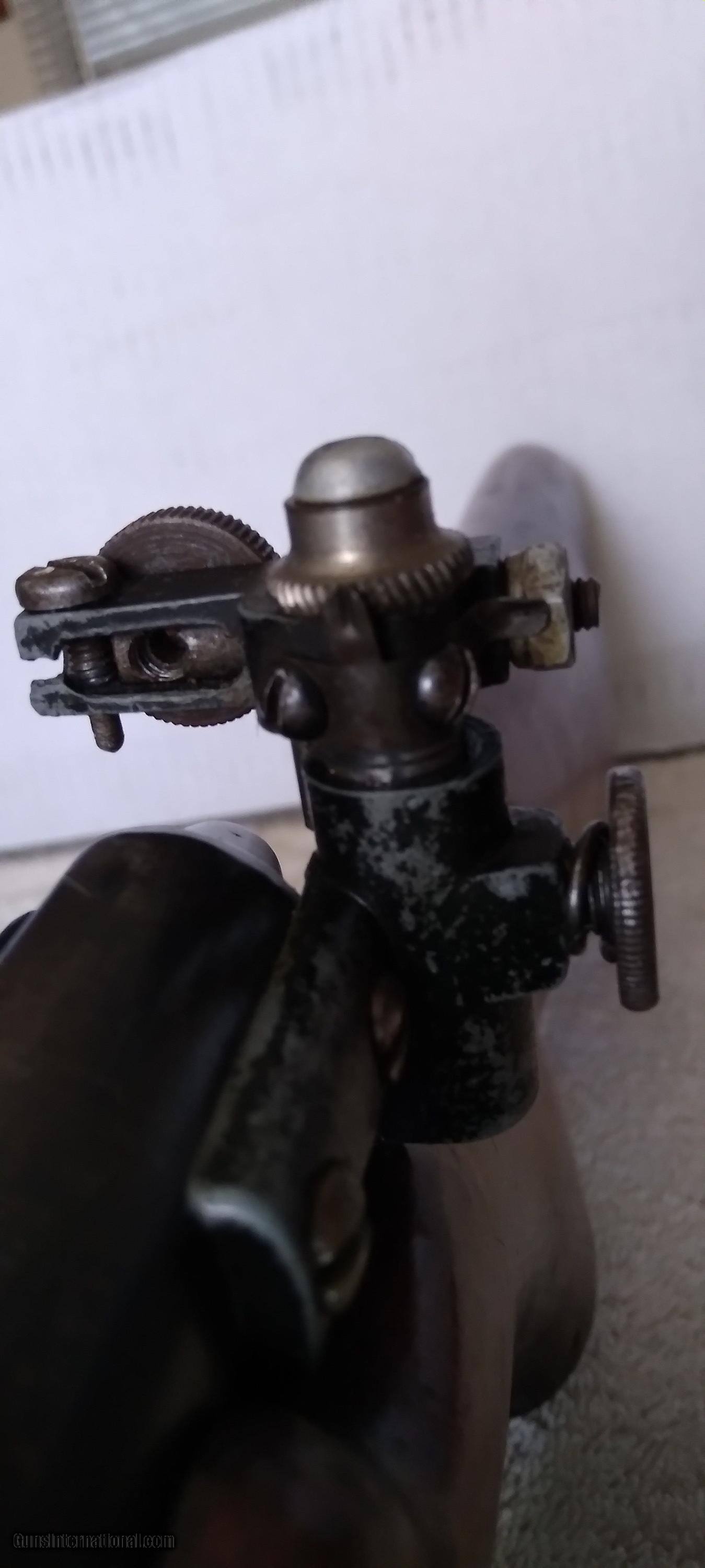 Description: SOLD SOLD SOLD MOSSBERG .22 RIMFIRE CALIBER .22 SHORT - LONG - LONG RIFLE NSN 23in BARREL WALNUT PISTOL GRIP STOCK IN EXCELLENT SHAPE WITH RAISED CHEEK PIECE ORGIONAL FINISH 98%+ WITH TYPICAL HANDELING MARKS SOME SCUFFS DENTS DINGS BLUING IS OK/GOOD WITH SOME THINNING FADING PATINA BORE HAS LITE PITTING WITH FAIR RIFLING BUT WORN FRONT SIGHT FOUR POST ADJUSTABLE SELECTION REAR SIGHT ADJUSTABLE APERTURE PEEP SIGHT SOME BUBBA REPLACMENTS NUTS AND SCREWS BARREL DRILLED AND TAPPED FOR ADJUSTABLE NOTCH MIDDLE SIGHT RECEIVER DRILLED AND TAPPED FOR A SCOPE MOUNT MISSING SLING MOUNTS MAGAZINE STORAGE COMPARTMENT IN THE BUTT PLATE COMES WITH THREE MAGAZINES ONE ORGIONAL SEVEN ROUND MAGAZINE TWO SCHERER SEVEN ROUND MAGAZINES MUST SHIP TO FFL OR C&R FFL SHIPPING $35.00 SOLD SOLD SOLD SOLD Curio/Relic: Yes Rifle Caliber: .22 Long Rifle Manufacturer: MOSSBERGE Model: 42M Serial Number: NSN Barrel Length: 23in Bore: FAIR RIFLING Condition: GOOD Metal Condition: Excellent Wood Condition: Excellent Bore Condition: FAIR WITH LITE PITTING Sights: ADJUSTABLE PEEP Manufacture Date: LATE 1940s EARLY 50s |