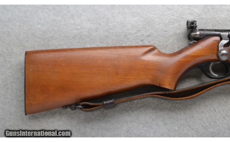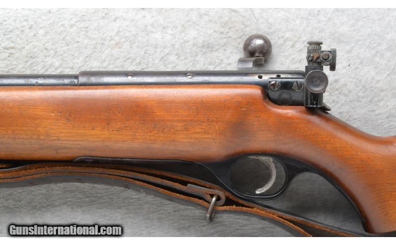 Description: This Mossberg Model 42M-B is a right hand bolt action rifle in .22 Short, Long or Long Rifle Cal. It has a 23 inch barrel. A blade front sight and an adjustable aperture rear sight. The butt stock is a smooth grip hardwood pistol grip. The forearm is a smooth grip hardwood. The top of the barrel and receiver is stamped United States Property. S/N 15016. .22 Short/Long/Long Rifle SOLD Chambers: Detachable Magazine. Metal Condition: Fair. Has a lot of light freckling and a few minor handling marks. Wood Condition: Fair. Light handling marks. Bore Condition: Excellent. Barrels: 23 inch. Stock Dimensions: LOP 13 1/2 inches. Fore End: Smooth grip hardwood. Butt Pad: Grooved steel plate with a trap door storage compartment. Weight: 6 lb. 14 oz. Sights: Raised blade front. Adjustable aperture rear. Item Location: Richfield, WI |