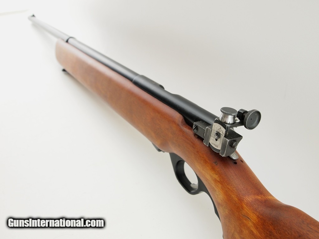 Description: Mossberg 44 US .22 LR, 26" bbl, bright shiny bore, good rifling, Lyman adjustable rear peep sight, blade front sight, blued finish, nice smooth hardwood grip stock, circle on each side of butt stock, sling loops, one 5 round magazine, and metal butt plate. Add 3% for Credit Card Shipping $30.00 SOLD |