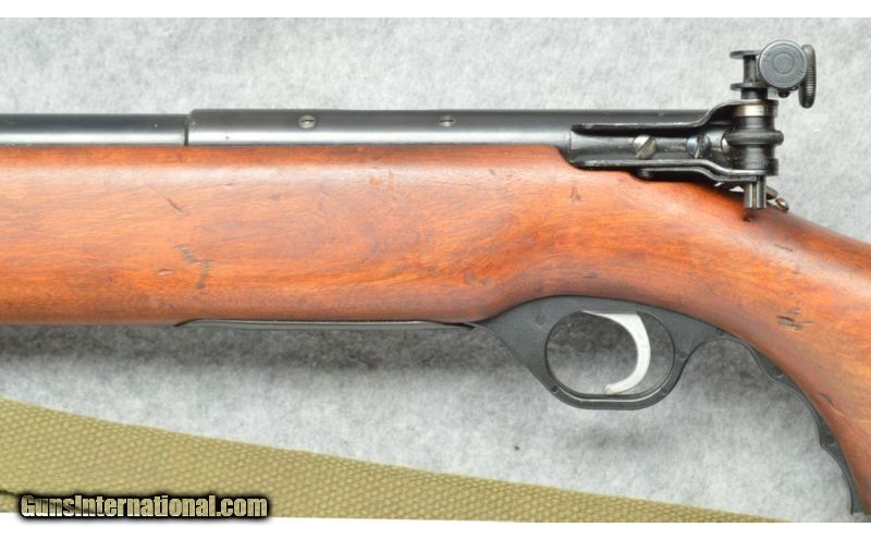 Description: SOLD Curio/Relic: Yes Manufacturer: 1944 - 1949 Caliber Info: .22 LR Chambers: Bolt action, detachable magazine, five round capacity. Comes with one magazine. Metal Condition: Very good. Wood Condition: Good. Bore Condition: Very good. Barrels: 25 inch round blued rifled heavy barrel. Triggers: Single stage trigger. Stock: Smooth wooden pistol grip stock. Stock Dimensions: 13 1/8 inch length of pull. Fore End: Smooth wooden fore-end integrated with the stock. Butt Pad: Steel checkered butt plate. Weight: 7 pounds. Sights: Globe front sight, rear Mossberg Microclick peep sight adjustable for elevation and windage. Extras: Comes with one magazine. Item Location: Berlin, MA |