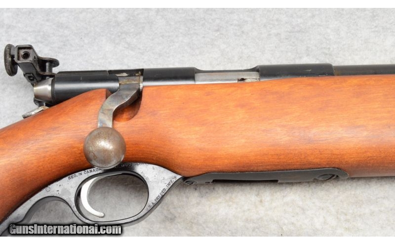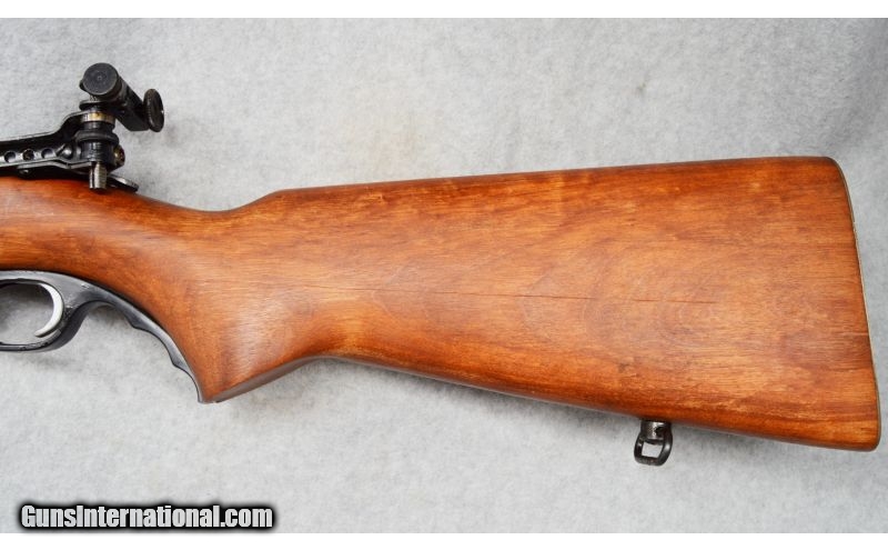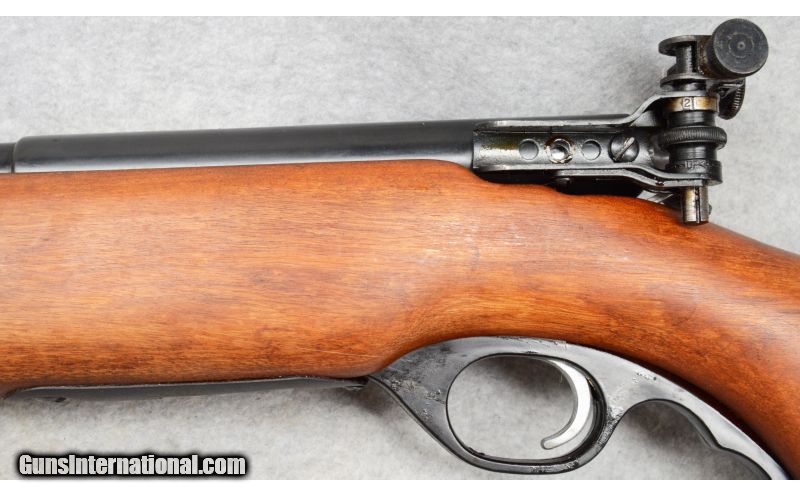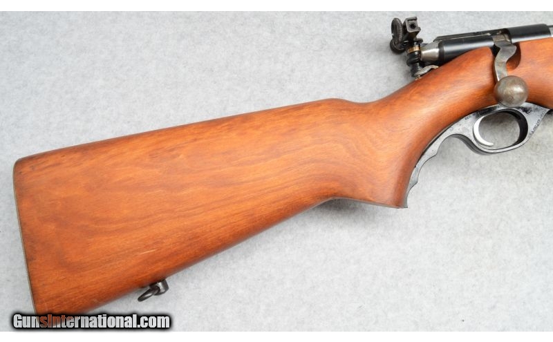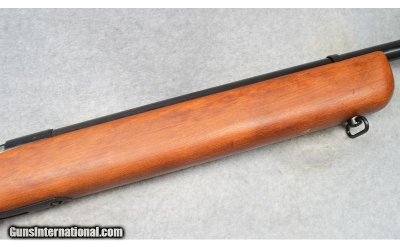 Description: SOLD Caliber Info: .22 LR Metal Condition: Very good with scratches. Wood Condition: Very good with minor scratches. Bore Condition: Shiny with strong rifling. Barrels: 26 Stock: Smooth walnut. Fore End: Smooth walnut. Butt Pad: Textured steel. Weight: 7-lbs., 2-ozs. Sights: Front target blade, adjustable rear target apreture. Item Location: Fort Worth, TX |